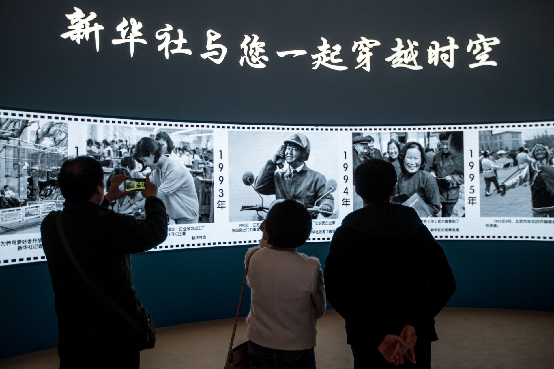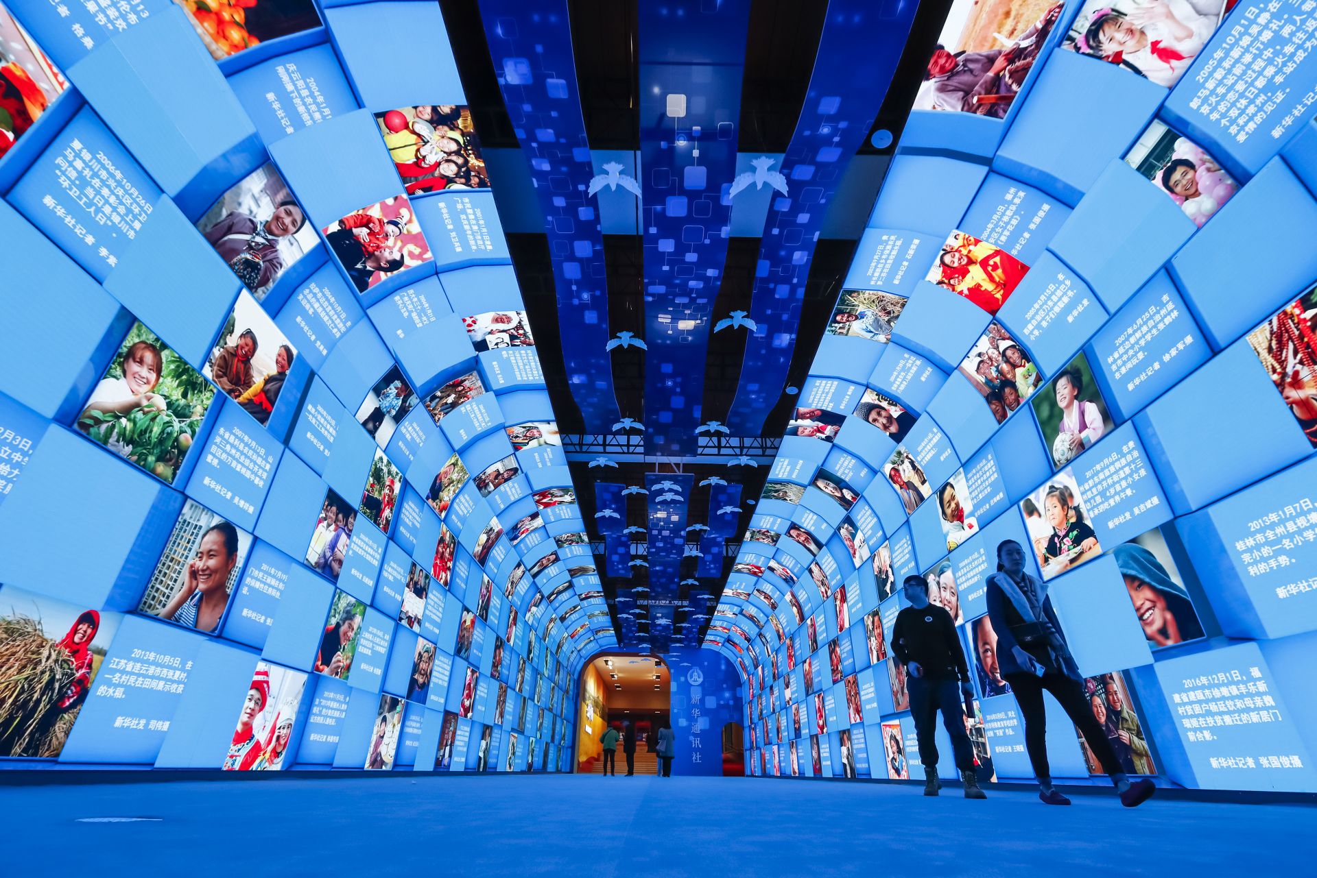 11月14日,观众在“伟大的变革——庆祝改革开放40周年大型展览”上参观“大美中国”影像长廊。新华社记者 沈伯韩 摄