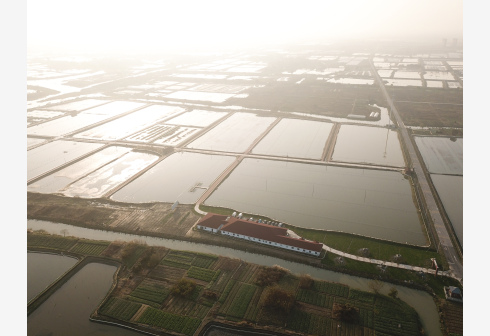 俯瞰湖州市吴兴区高新区庙港人千亩水产园(12月17日无人机拍摄)。在庙港人千亩水产园,太湖水被引入内塘中,目前已形成完善的蟹苗培育、成蟹养殖功能区。为了更好地保护太湖水环境,2018年上半年起,环太湖区域开始实行“退蟹还湖”,引导在太湖水域围网养殖的蟹农搬迁至内塘养殖。据介绍,浙江省湖州市吴兴区太湖水域蟹农搬迁工作即将全部完成,实现产业环保升级。 新华社记者 翁忻旸 摄