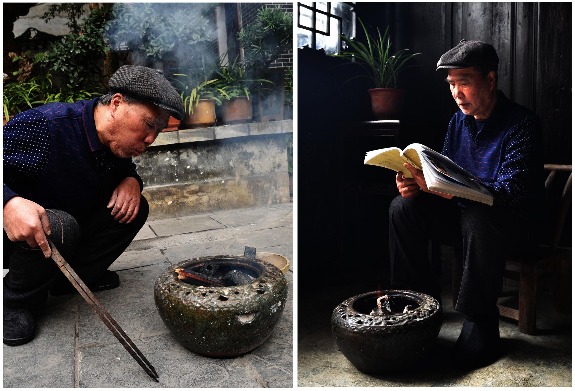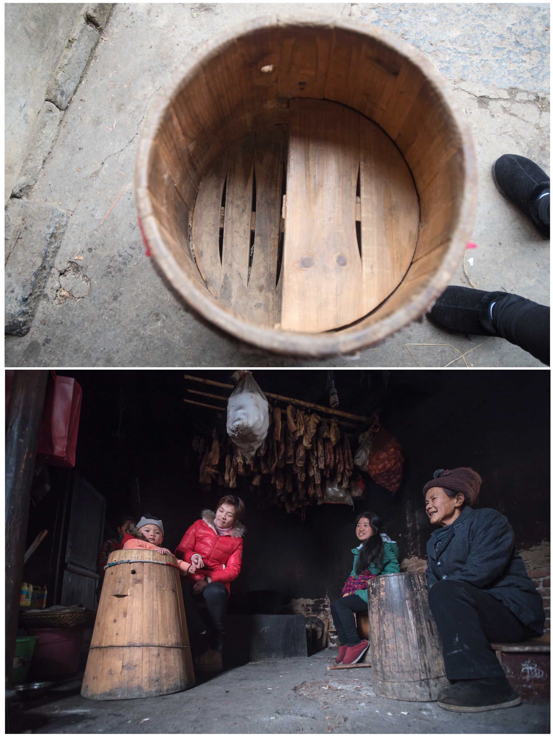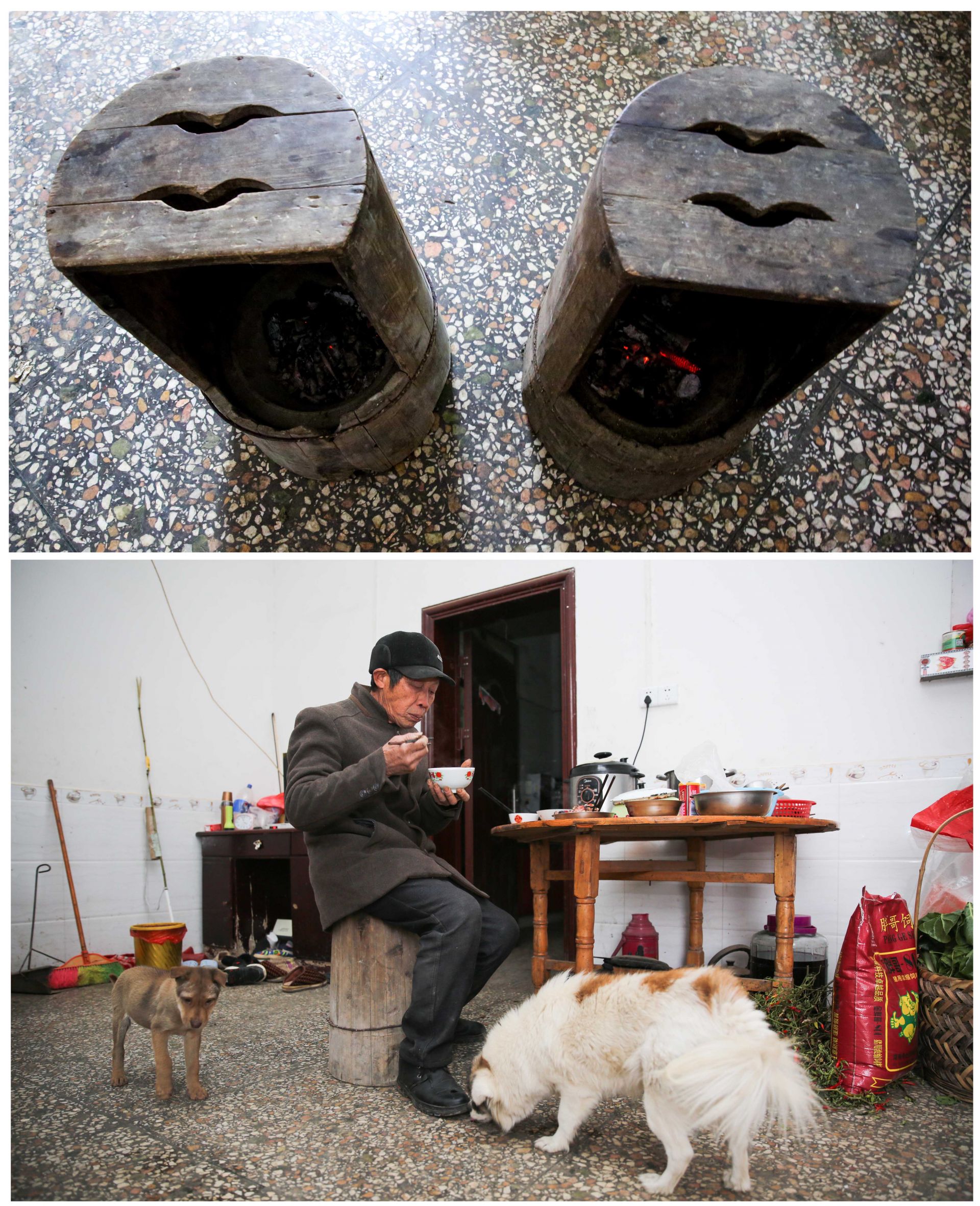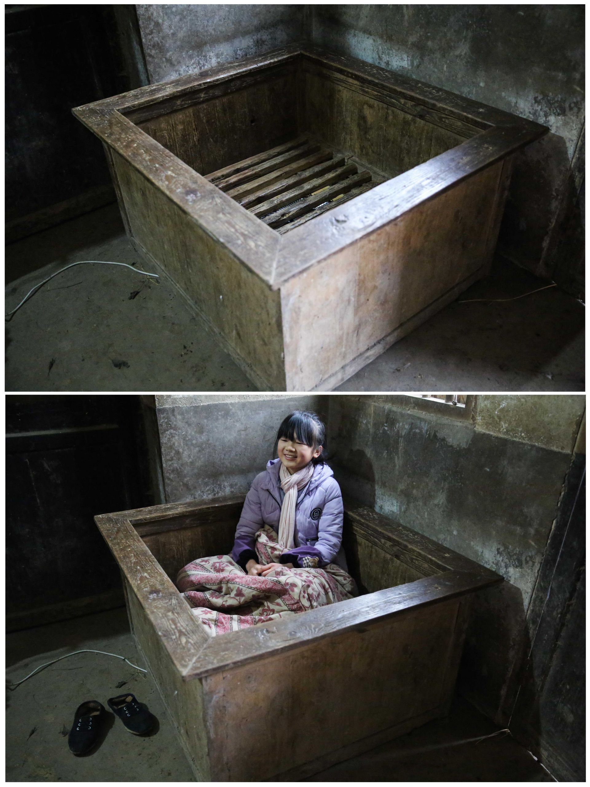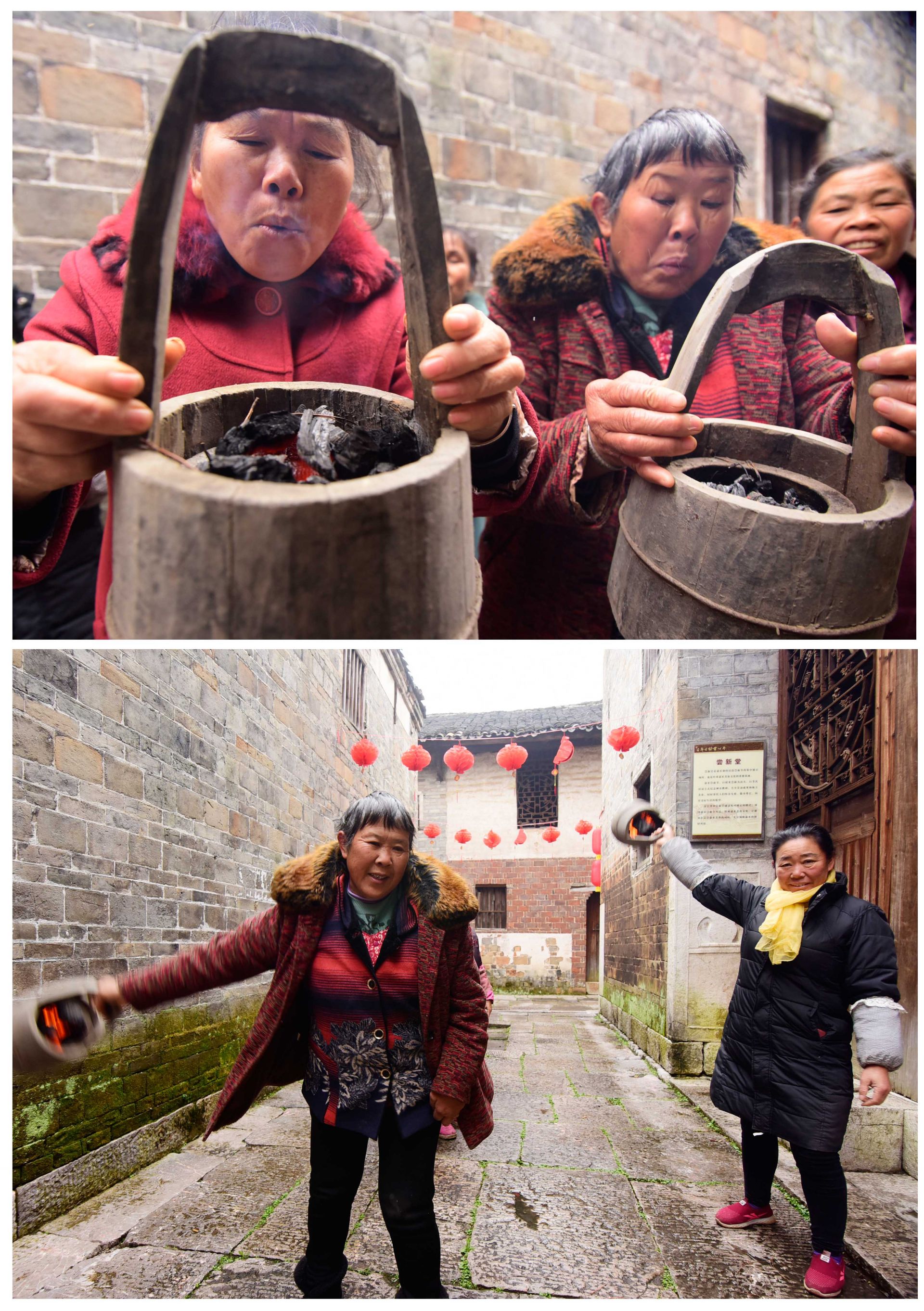 这是一张拼版照片,左图:12月16日,在湖南怀化市洪江古商城一处民房,一名男子在“火箱”上休息;右图:12月15日,在湖南怀化市洪江古商城一店铺,三名妇女坐在“火箱”旁织毛衣。 近日,我国南方地区气温骤降。在湖南各地,人们拿出家中的传统取暖工具抵御寒冷。一件件充满民间智慧的取暖“神器”,唤起了不少人的童年记忆。家人、朋友围坐在一起,暖意浓浓、其乐融融。 新华社 发(尹忠 摄)