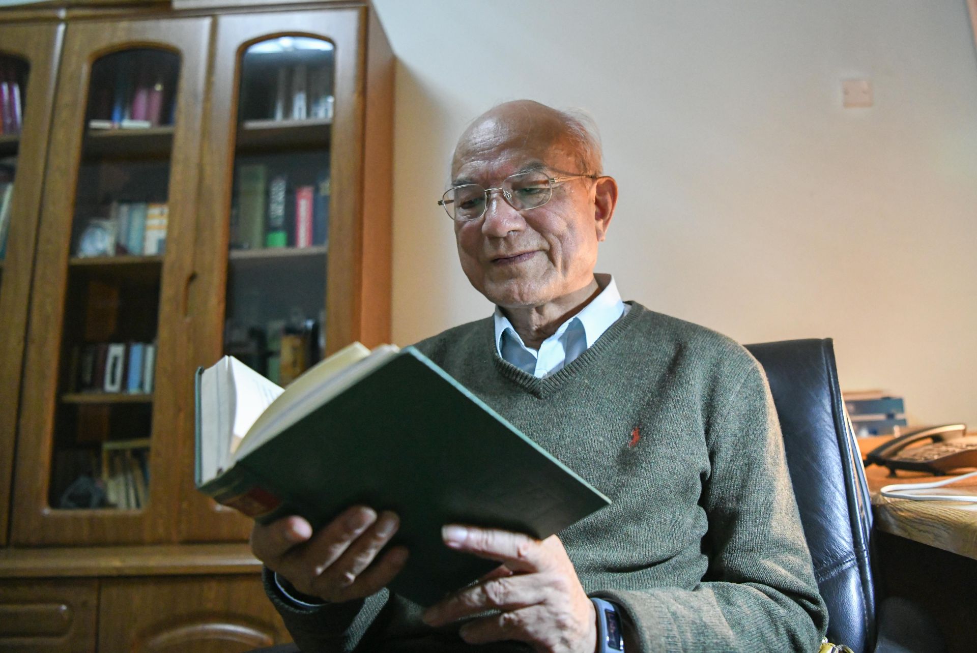 刘永坦在家中看书(2018年12月25日摄)。新华社记者 王松 摄
