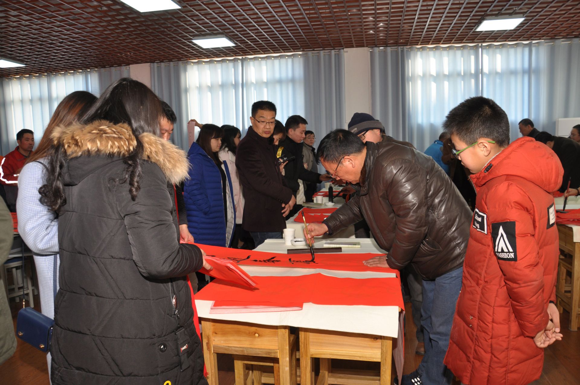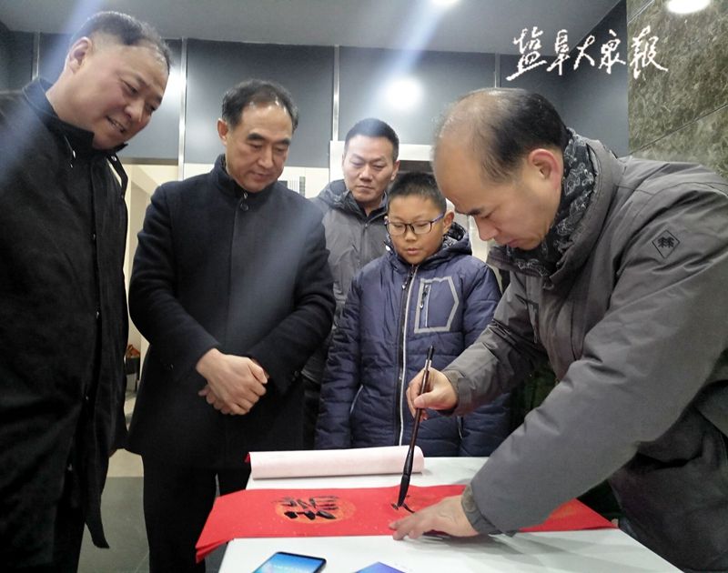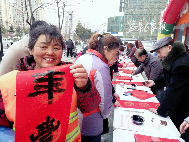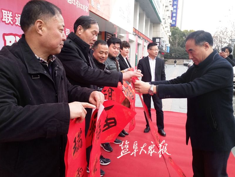 1月26日下午,市总工会组织给劳模和职工送春联活动。我市知名书法家吴洪春、施江、范洪贵、戴文彬等挥毫书写春联,送上新春祝福。活动现场向仇爱清、肖兆玉等劳模代表赠送春联,并为职工和市民送春联送福字。盐阜大众报报业集团全媒体记者 程爱春 摄