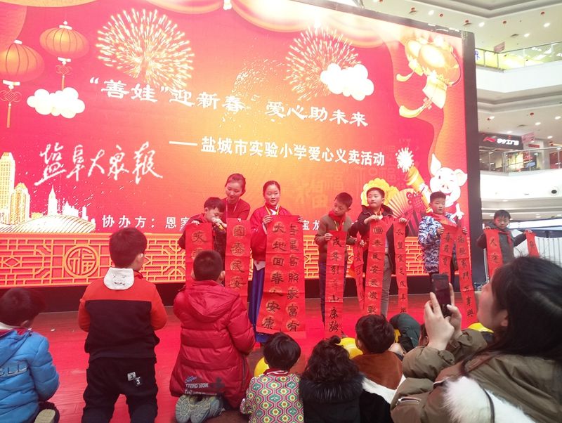 拍卖春联。现场所得善款5100多元全部损赠给市儿童福利院。盐阜大众报报业集团全媒体记者 程爱春