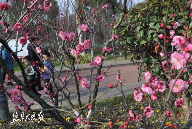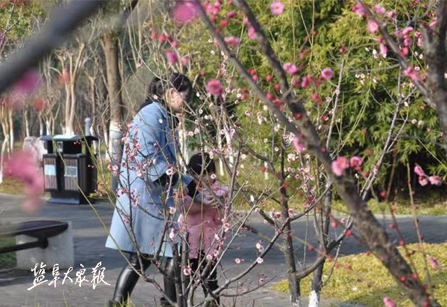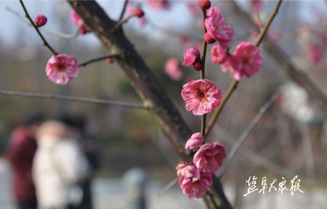 2月24日,天气晴朗,风和日丽,盐渎公园内梅花绽放。这些盛开的梅花,白的如雪,粉的似霞,香气扑鼻,沁人心脾,加之亭台楼榭的映衬,移步换景犹如画中,吸引了众多市民驻足观赏、拍照留念。图为梅花醉红着脸倚在枝头。 盐阜大众报报业集团全媒体记者 黄海峰 摄