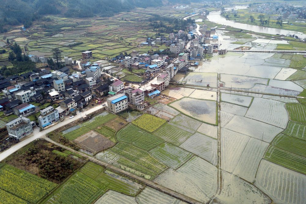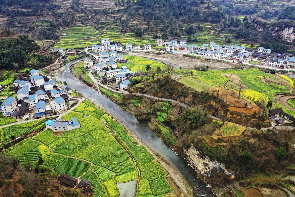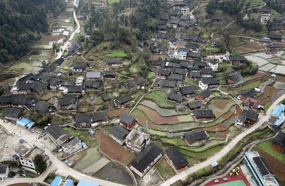 这是3月5日无人机拍摄的贵州省遵义市余庆县白泥镇民同村。 初春时节,贵州各地风光旖旎,美丽乡村风景如画。 新华社发(穆明飞 摄)