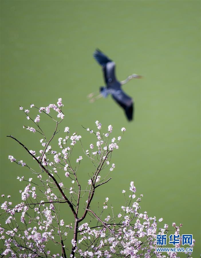 3月12日,一只苍鹭在巢边舞动翅膀。 随着气温回升,在山西省平陆县黄河边的一处悬崖上,栖息在这里的数百只苍鹭开始筑巢孵卵,飞舞、嬉戏、捕食,享受美丽春光。 新华社发(刘文礼 摄)