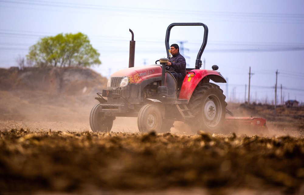 3月19日,河北省武安市北安庄乡禾旺家庭农场的农民驾驶农机耕地。 随着天气逐渐转暖,河北武安市农民抢抓农时开展春耕春播,为夏粮丰收打好基础。 新华社记者 王晓 摄