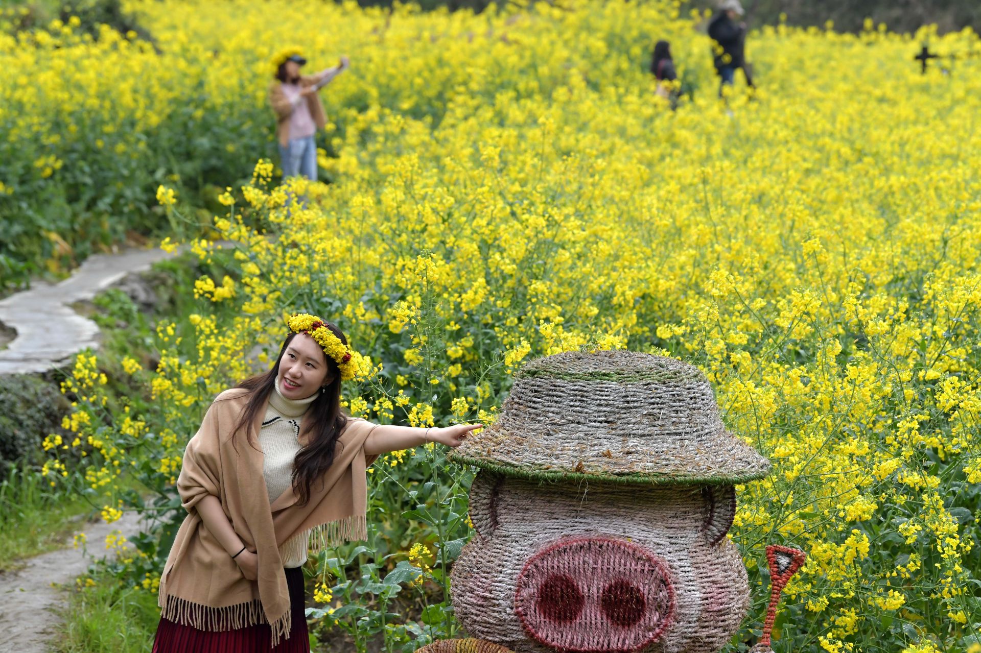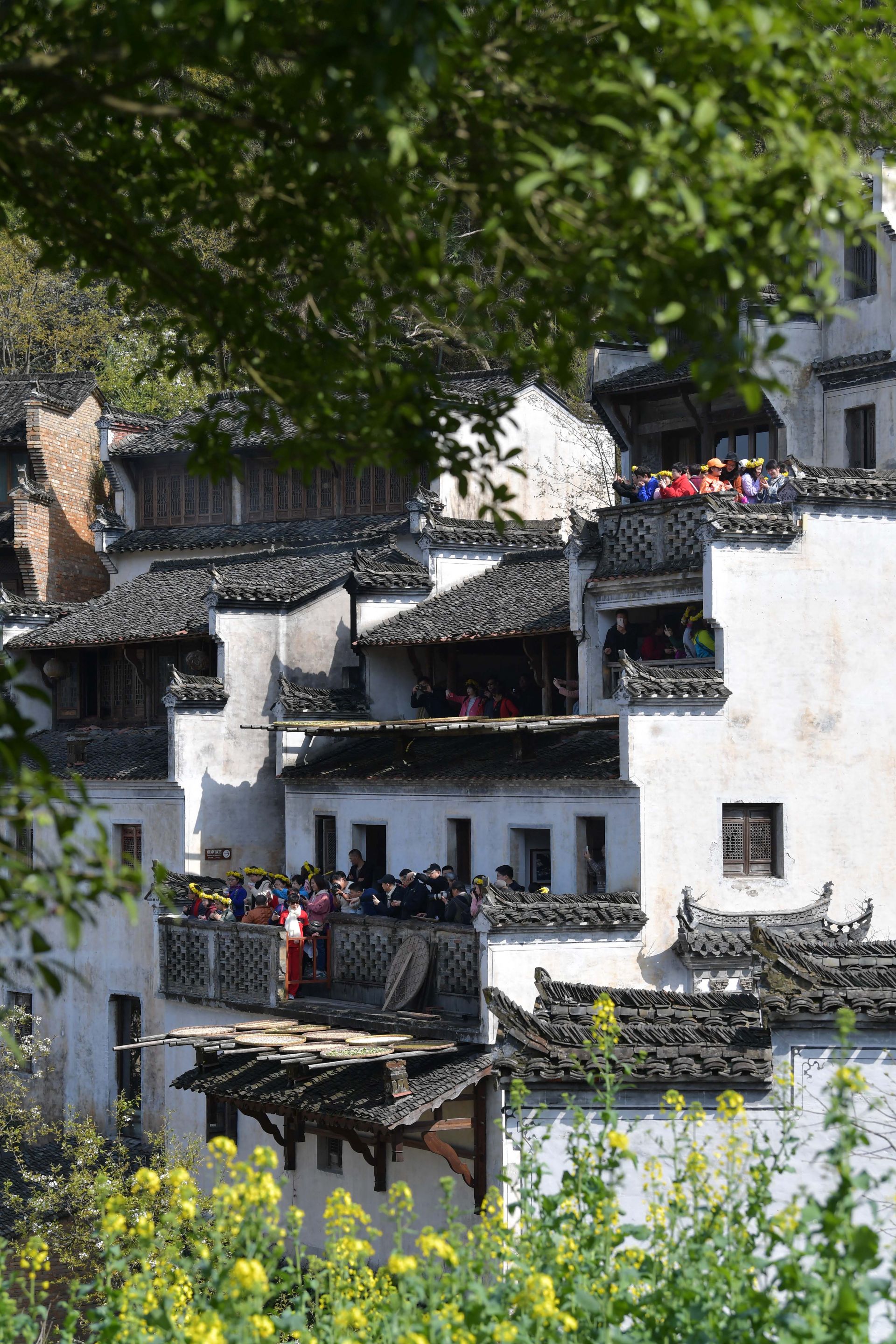 游客在江西省婺源县篁岭景区游玩踏春(3月26日摄)。新华社记者 彭昭之 摄