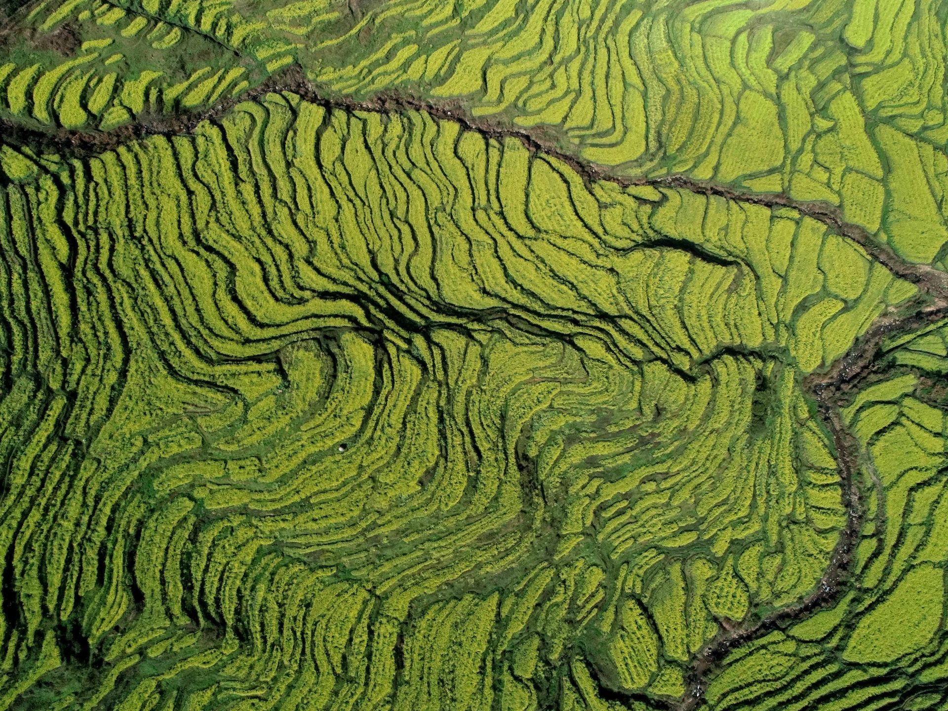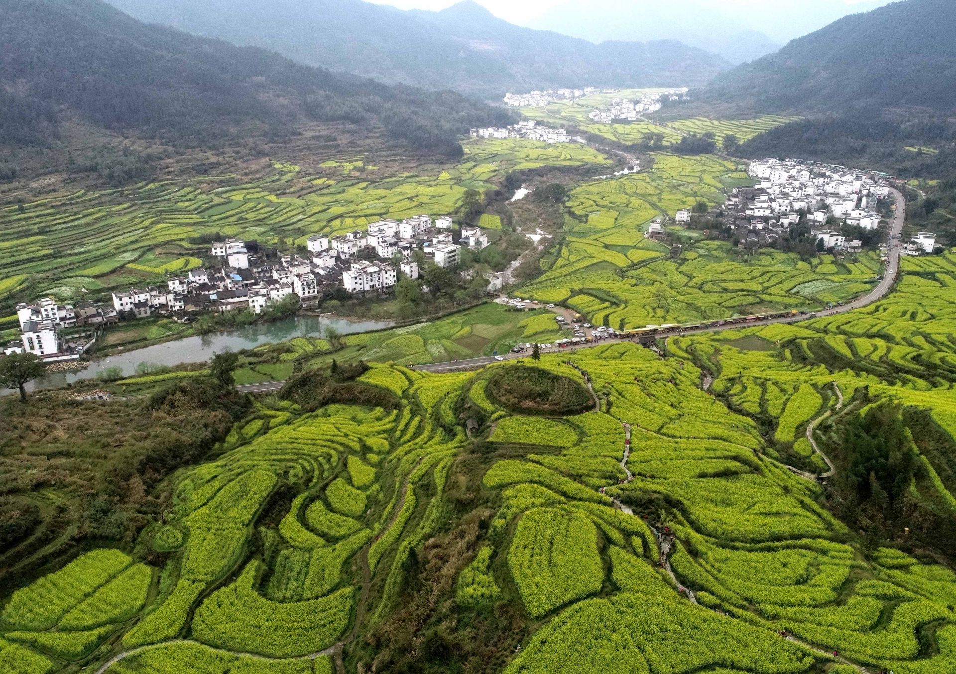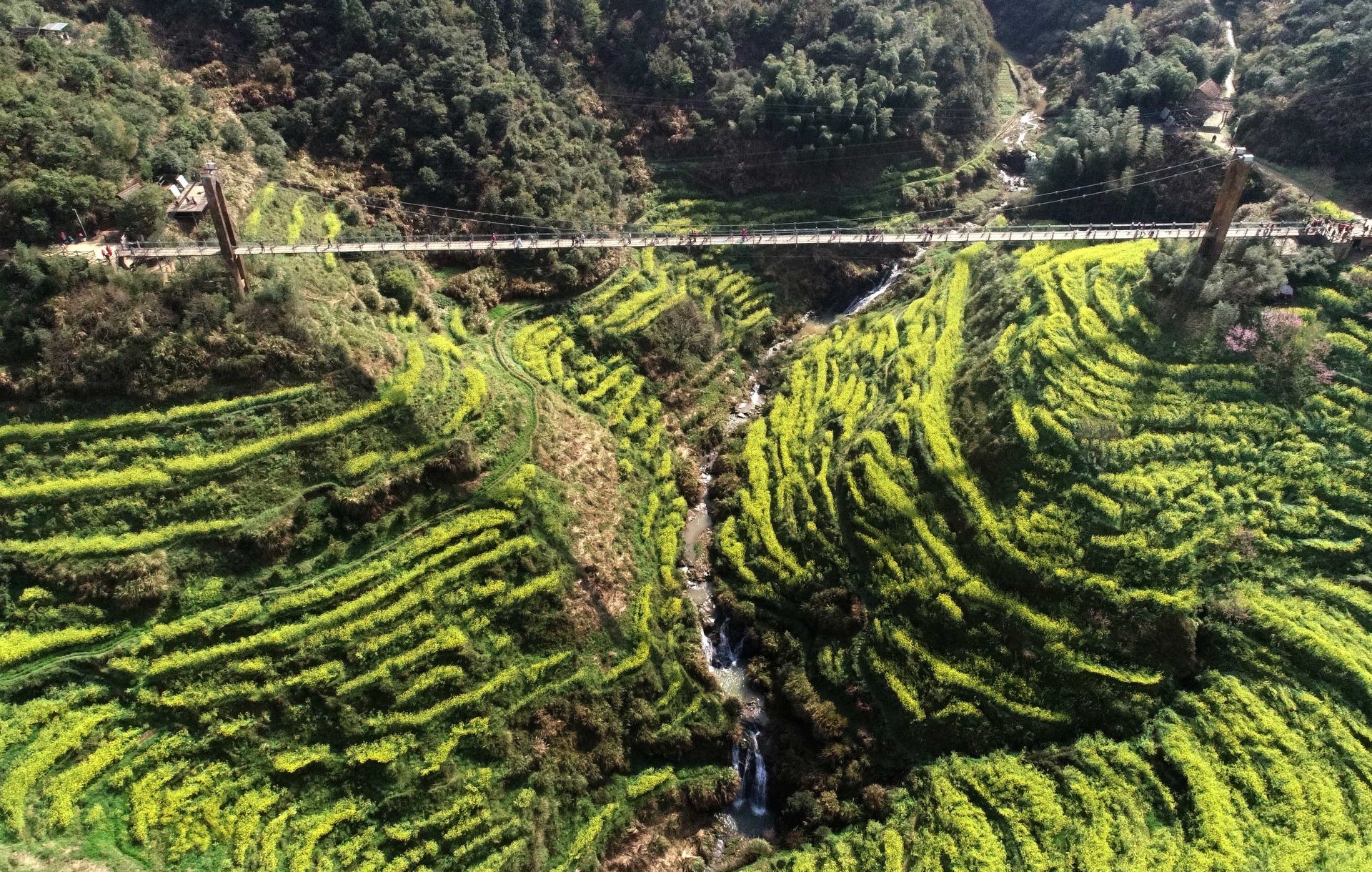 这是3月25日无人机拍摄的江西省婺源县江岭景区的油菜花田。新华社记者 彭昭之 摄