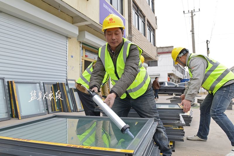 3月28日上午,陈家港镇海安居委会,工人们正在搬运窗框。盐阜大众报报业集团全媒体记者 李思远 摄