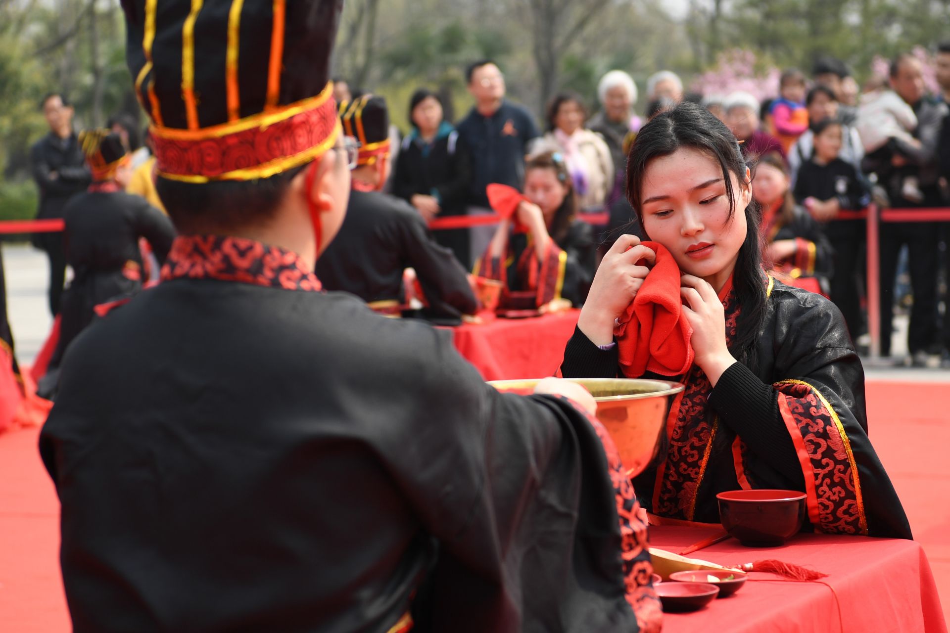 3月30日,新人们在参加汉式集体婚礼。新华社记者 张端 摄
