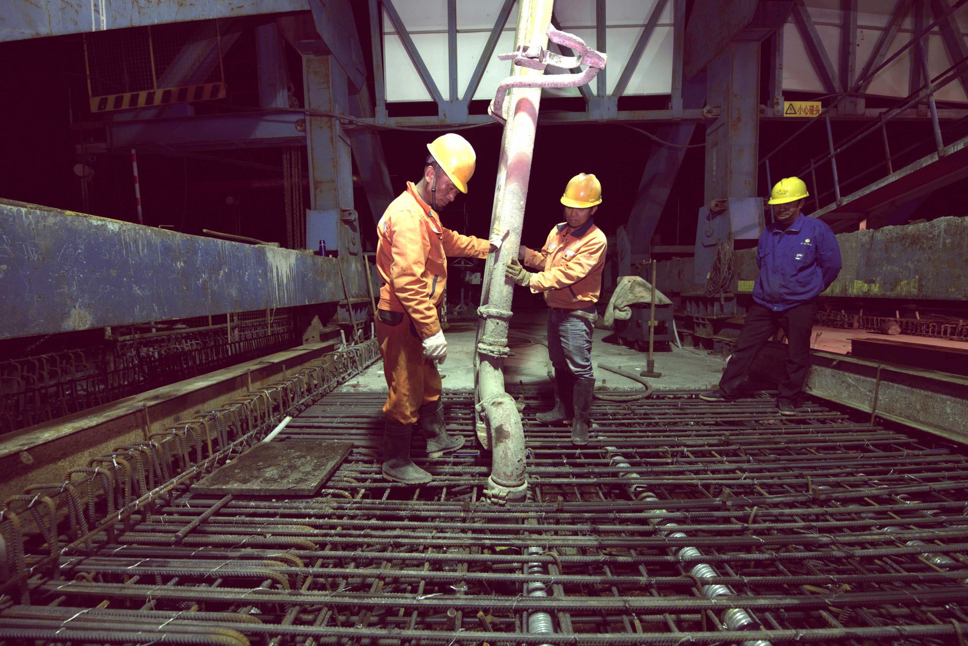 4月16日,中铁四局建筑公司施工人员在合龙现场作业。新华社记者 刘军喜 摄
