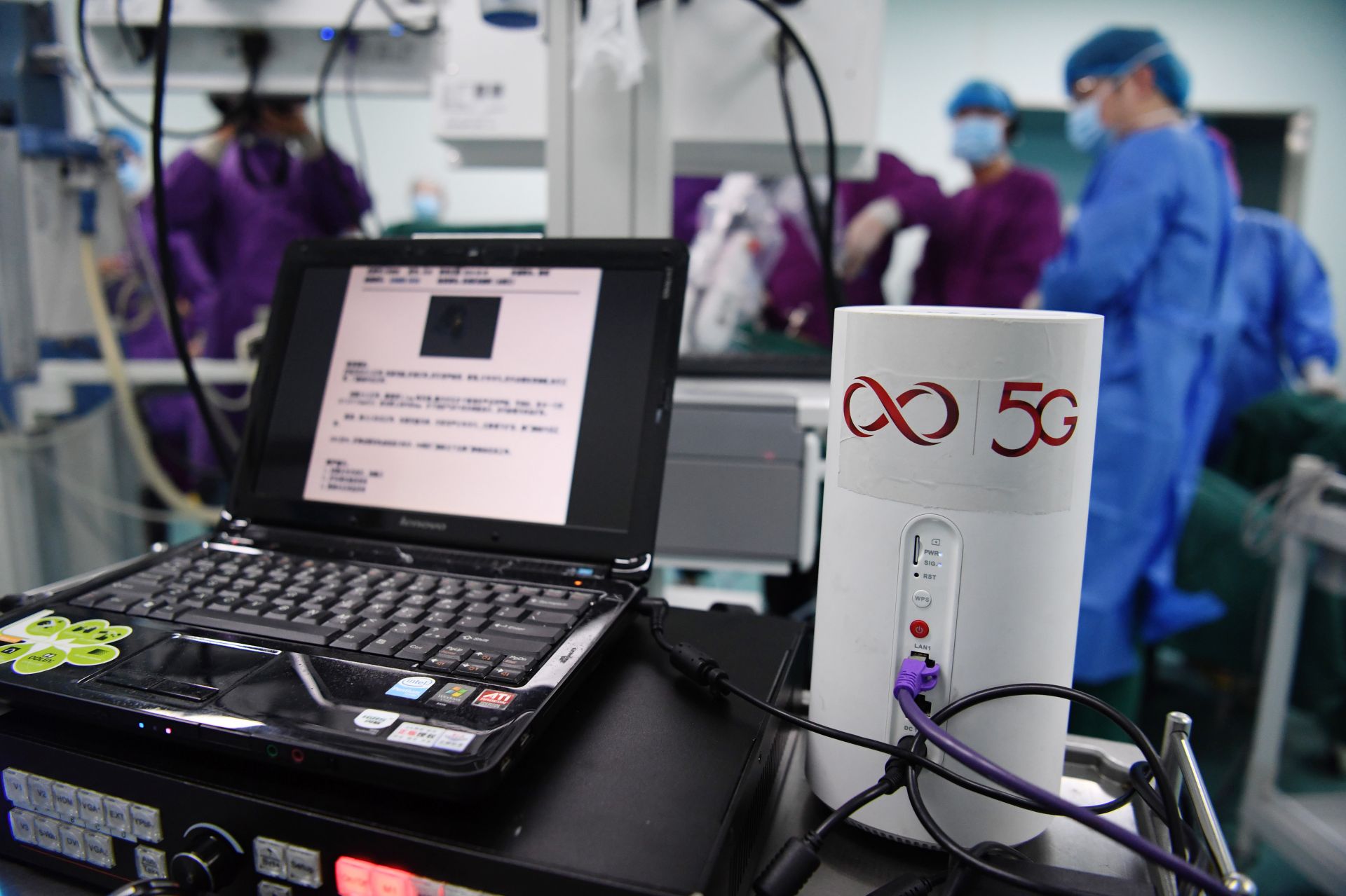 5月10日,石台县人民医院医护人员通过5G远程协同操作平台,在安徽医科大学第二附属医院专家的指导下进行手术操作。 当日,安徽省首例5G网络支持下远程协同手术由安徽医科大学第二附属医院牵头完成。借助5G技术,安徽医科大学第二附属医院医学专家为安徽省石台县人民医院开展的两台腔镜手术进行实时精准指导,并通过语音调节石台县人民医院手术室的机器,实现手术的5G远程协同操作。 新华社发(徐旻昊摄)