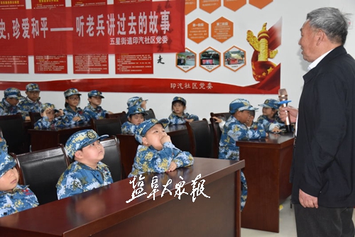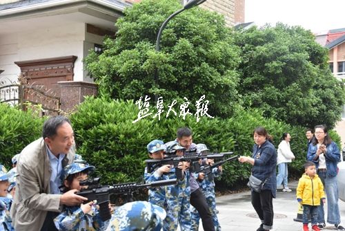 5月19日下午,亭湖区五星街道印汽社区组织国防教育活动,50名小朋友穿军装、上国防课、练习站军姿、模拟射击、学唱军歌,亲身体验一回当兵的滋味。社区还邀请86岁老党员、退伍老军人栾承盛为小朋友们讲述军营故事,激发爱国情怀和拥军热情,提升小朋友们的国防意识。活动结束时,社区工作人员向每一位参加活动的小朋友发放国防小卫士证书,鼓励他们刻苦学习科技知识,长大后为国防事业贡献自己的力量。盐阜大众报报业集团全媒体记者 程爱春 摄