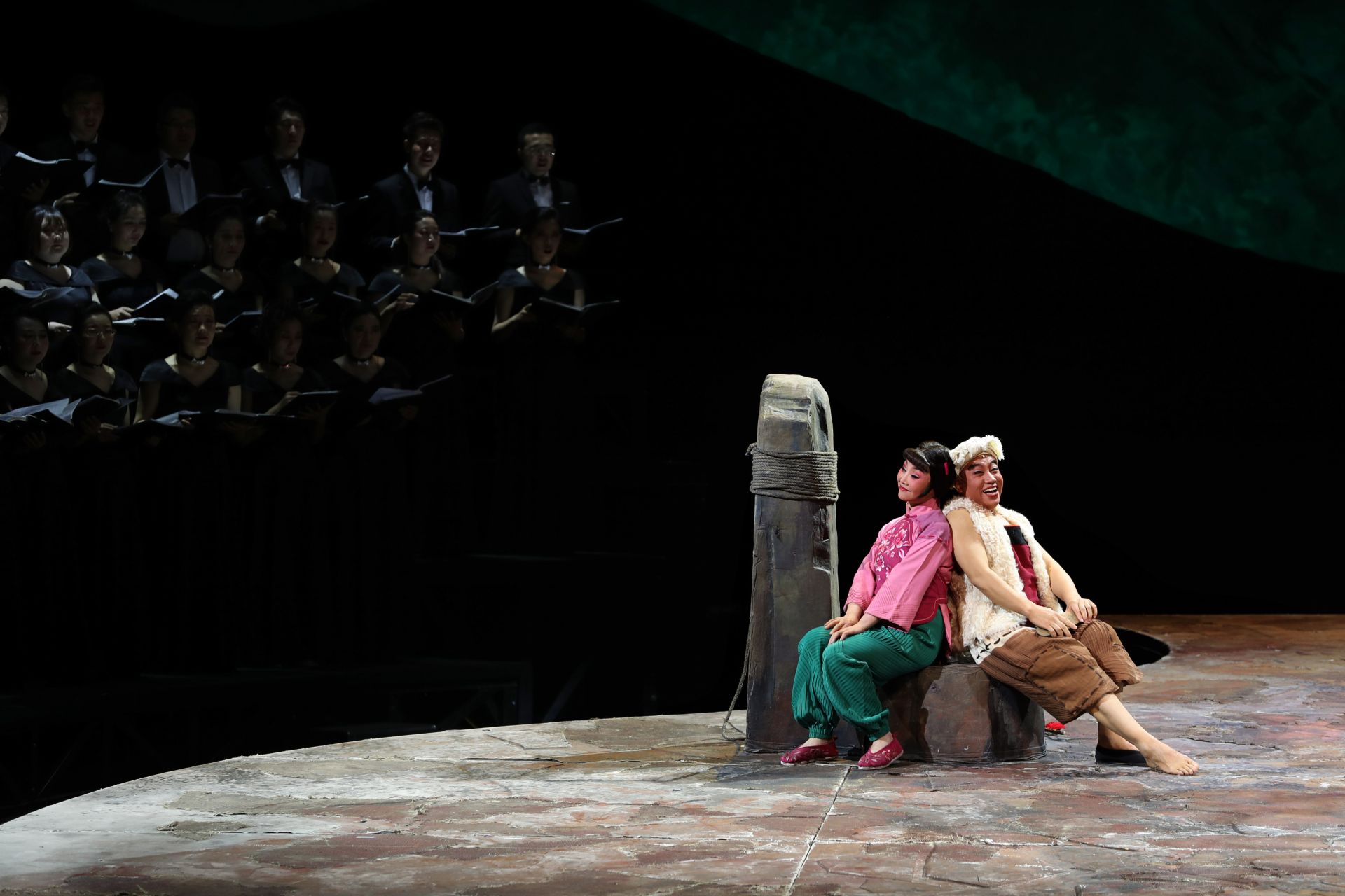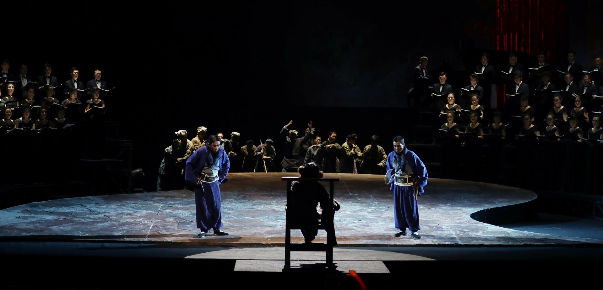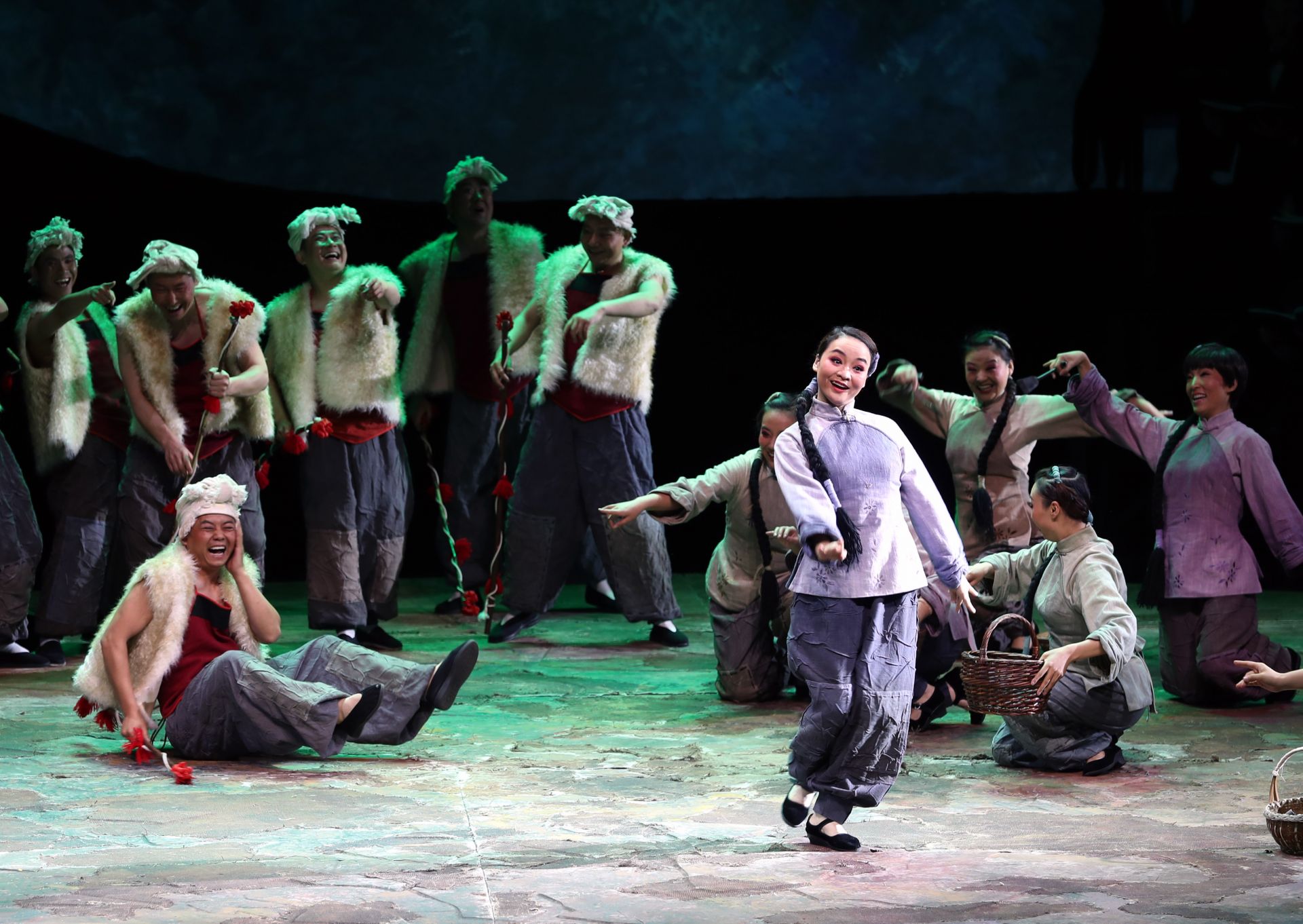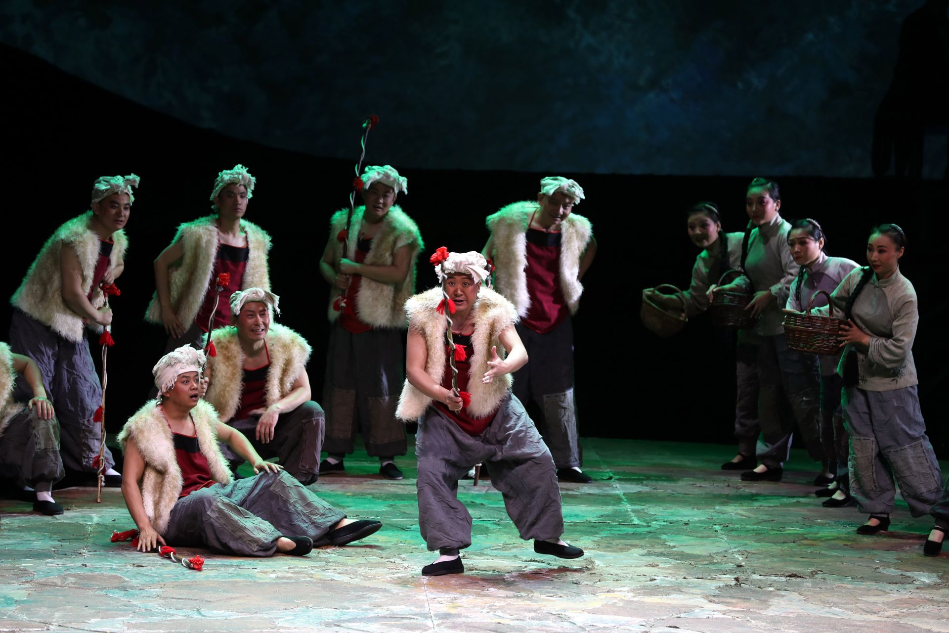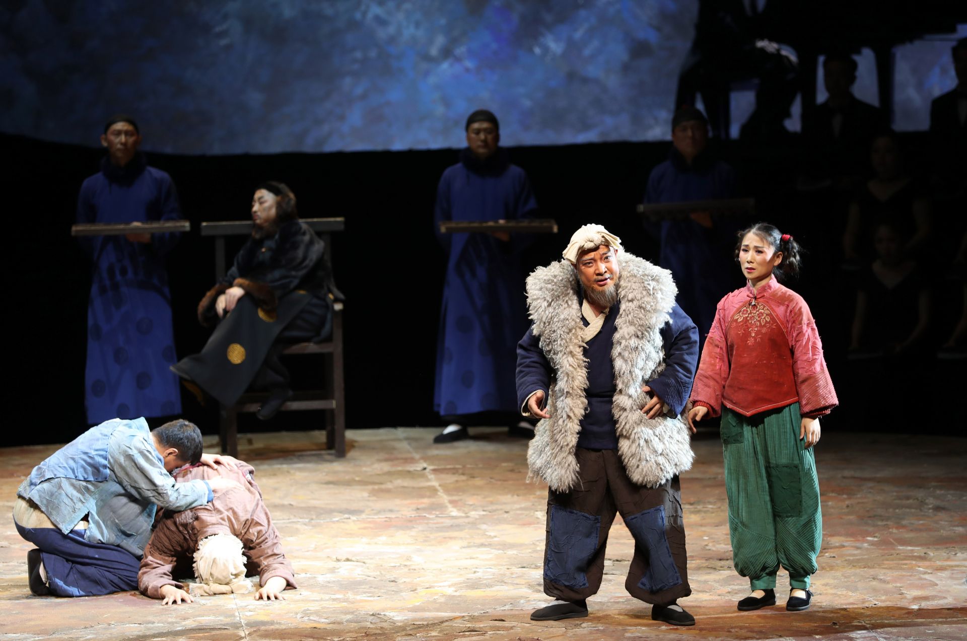 这是5月21日拍摄的秦腔现代戏《王贵与李香香》演出场景。 5月20日、21日,第十二届中国艺术节参演剧目——秦腔现代戏《王贵与李香香》在上海城市剧院连演两场,并将参评“文华大奖”。这部由宁夏演艺集团秦腔剧院创作演出的秦腔现代戏改编自李季的长篇叙事诗《王贵与李香香》,采用了交响合唱与传统戏曲相结合的手法进行演绎。 新华社记者 刘颖 摄