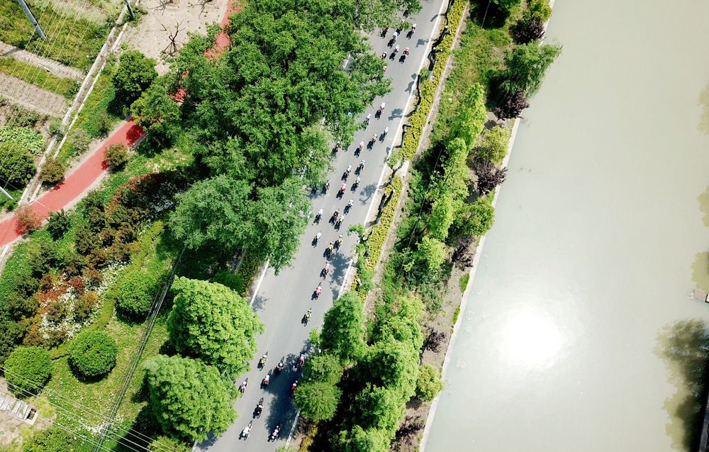 5月9日,参加2019年环崇明岛国际自盟女子公路世界巡回赛的运动员在三星镇海棠花溪景区内骑行(无人机拍摄)。 上海地处我国东部沿海中段、长江入海口,是我国最大的经济中心城市和长三角地区合作交流的龙头。目前,上海正按照经济建设、政治建设、文化建设、社会建设以及生态文明建设“五位一体”总体布局发展推进,其中生态文明建设的重要作用日益凸显。 崇明是上海这座繁华大都市的“后花园”,优美的生态环境是崇明最漂亮的“名片”。这里有海堤、湿地、森林公园、农场等多种景观,这里空气清新宜人、草木郁郁葱葱、小河蜿蜒清澈,这里更有丰富的农副产品。多年来,从崇明党政机关到每一位岛上居民,都把生态建设、绿色环保当作自己的“家务事”,常抓不懈。青山绿水、鱼跃鸟飞、橘黄蟹肥,在崇明人心里,这些“生态资产”就是“金山银山”。 目前,崇明正全力推动世界级生态岛建设又好又快发展,努力打造长三角城市群和长江经济带生态大保护的标杆和典范。 新华社记者方喆摄