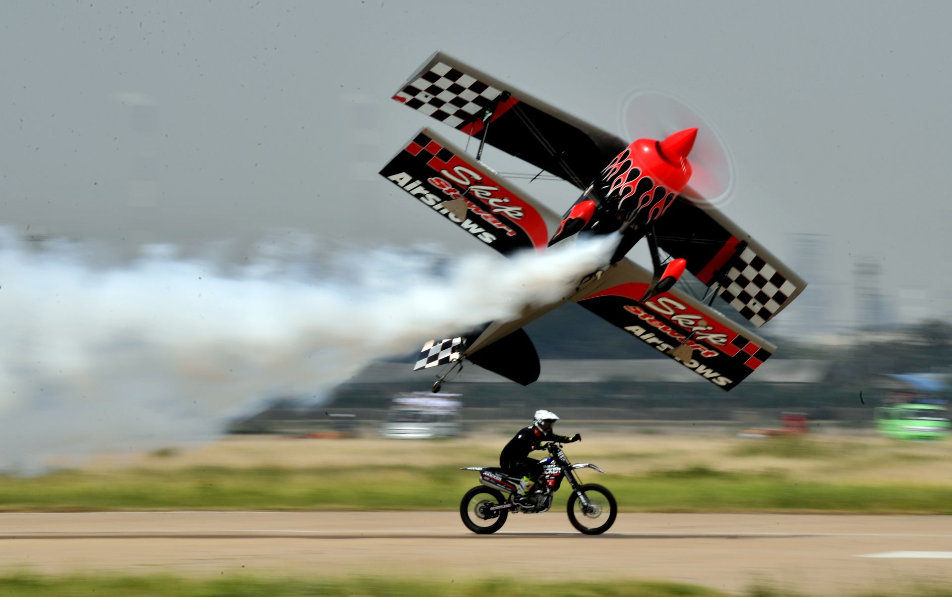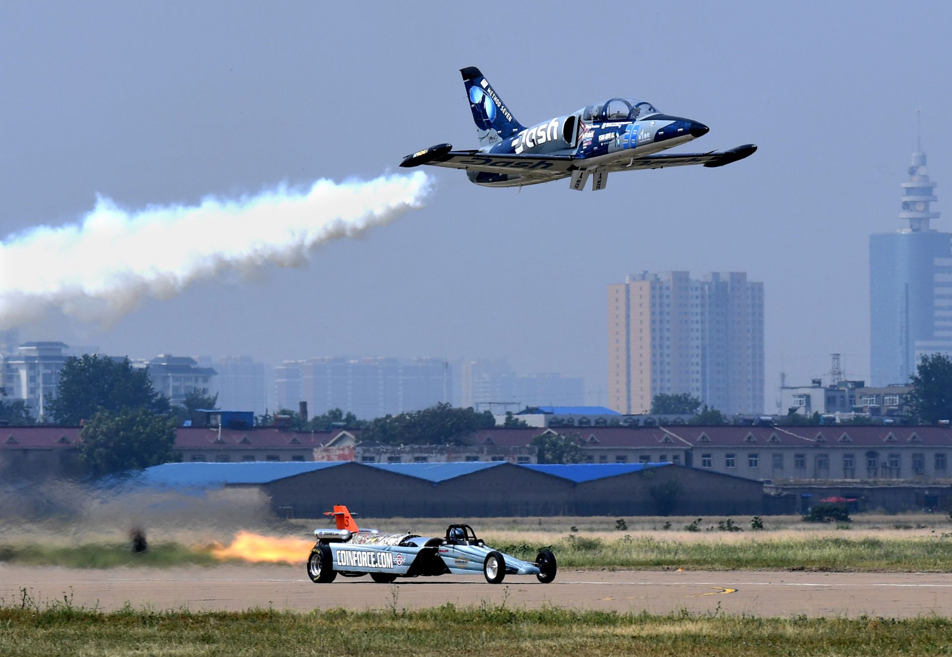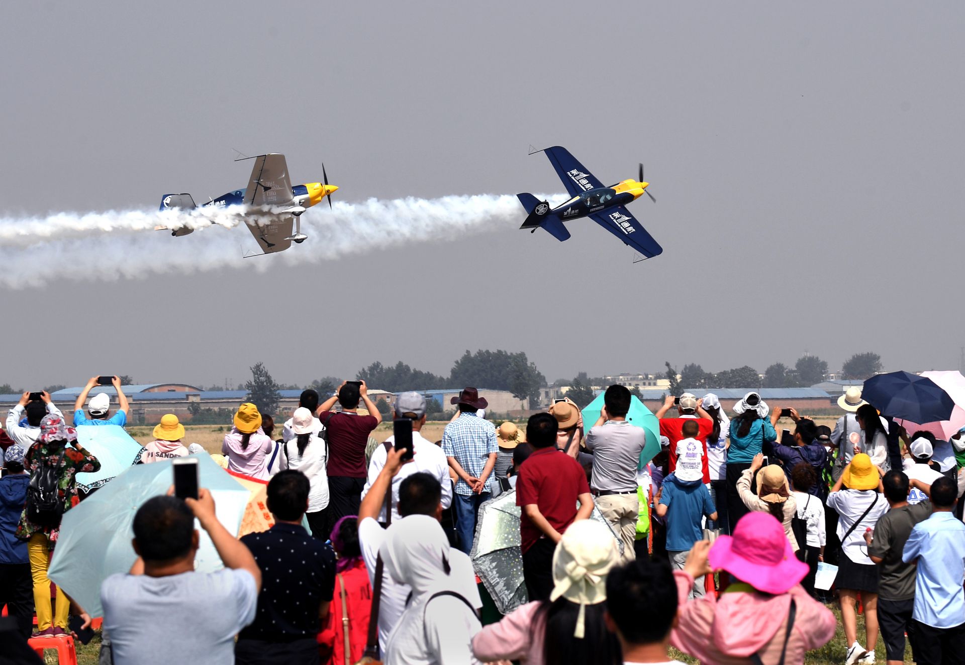 6月3日,在第十一届安阳航空运动文化旅游节开幕式上,航空爱好者驾驶飞机进行竞速表演。新华社记者 李嘉南 摄