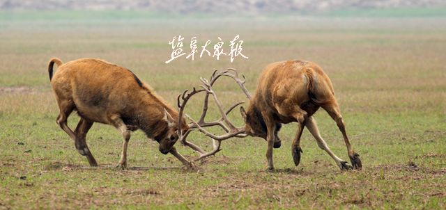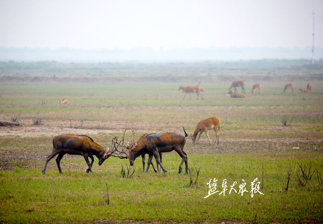 今天上午7点,在大丰麋鹿园自然保护区,2019“鹿王争霸赛”启动。 盐阜大众报报业集团全媒体记者 杨毅 摄
