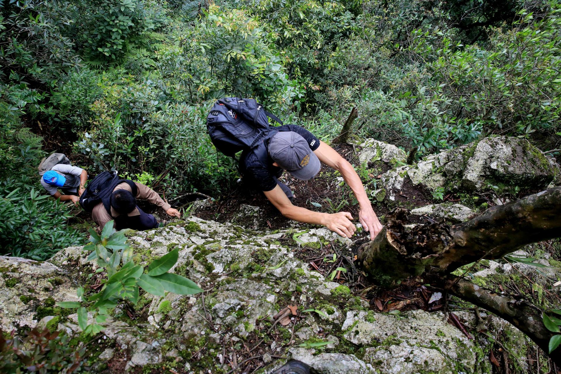 6月20日,在广西柳州市融水苗族自治县汪洞乡罗洞村,村民走过羊肠小道前去采割夏至蜜。新华社发(龙涛 摄)