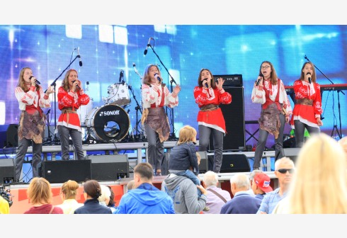 7月3日,在白俄罗斯首都明斯克,人们演唱歌曲,庆祝独立日。白俄罗斯全国各地3日举行各类节庆活动,隆重庆祝白俄罗斯独立日暨二战中从德国法西斯占领下解放75周年。 新华社 发(任科夫 摄)
