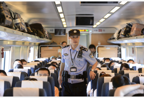 8月14日,王宁在D3056次列车上开展治安巡查。1971年出生的王宁是合肥铁路公安处乘警支队乘务二大队副大队长,他从警近20年,先后查获逃犯75名,破获各类毒品案件70余起。工作之余,王宁自学心理学课程,通过考试取得国家二级心理咨询师资格,结合实际工作,他把心理学和查堵犯罪相结合,提高工作效率。随着2019年暑运迎来客流返程期,王宁和同事投入到又一轮的忙碌之中。王宁希望值乘的每一趟列车都能平安到站,列车上的每一个旅客都能平安到家。 新华社 发(黄博涵 摄)
