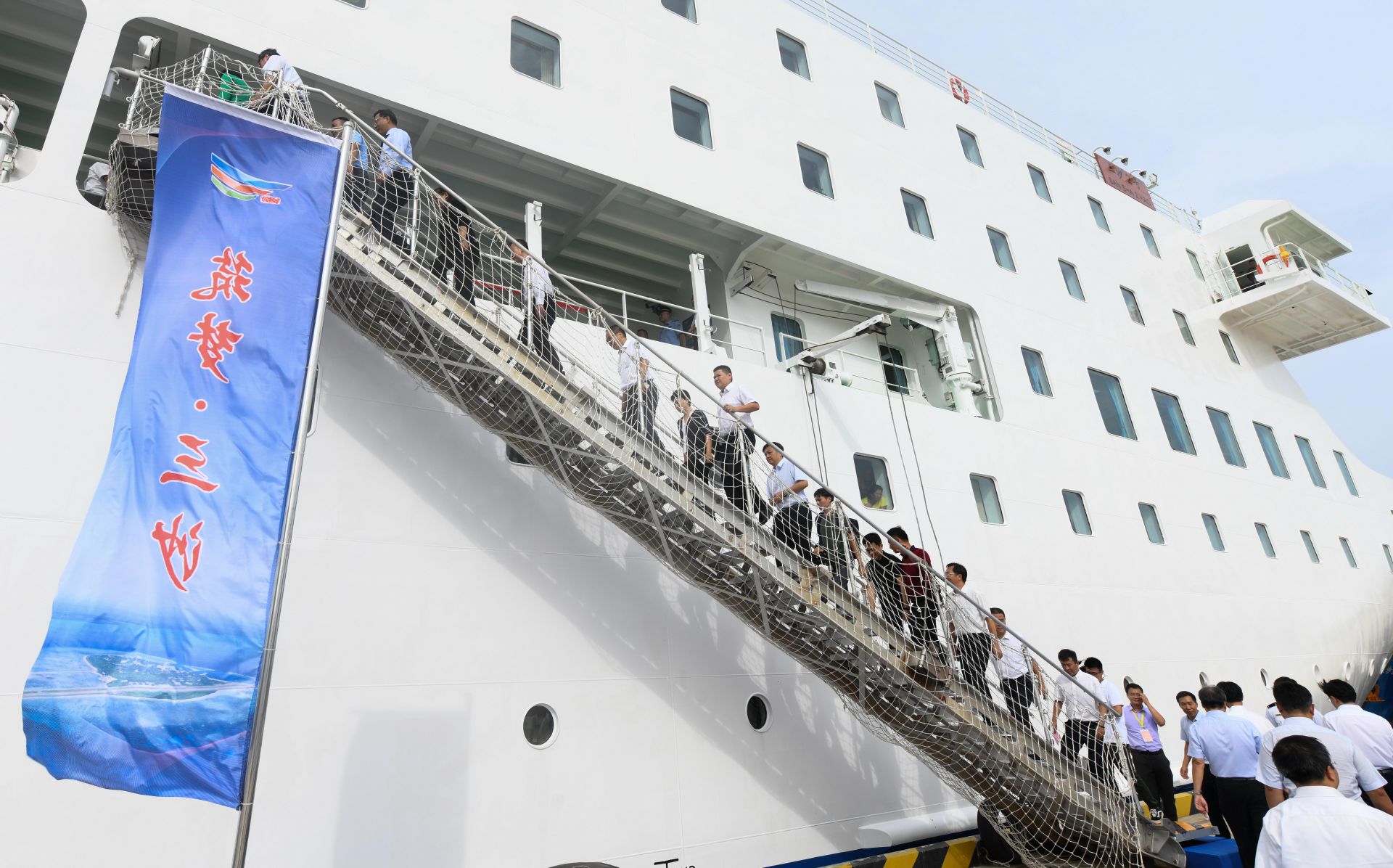 8月20日,“三沙2号”交通补给船停靠在文昌市清澜港。新华社记者 杨冠宇 摄