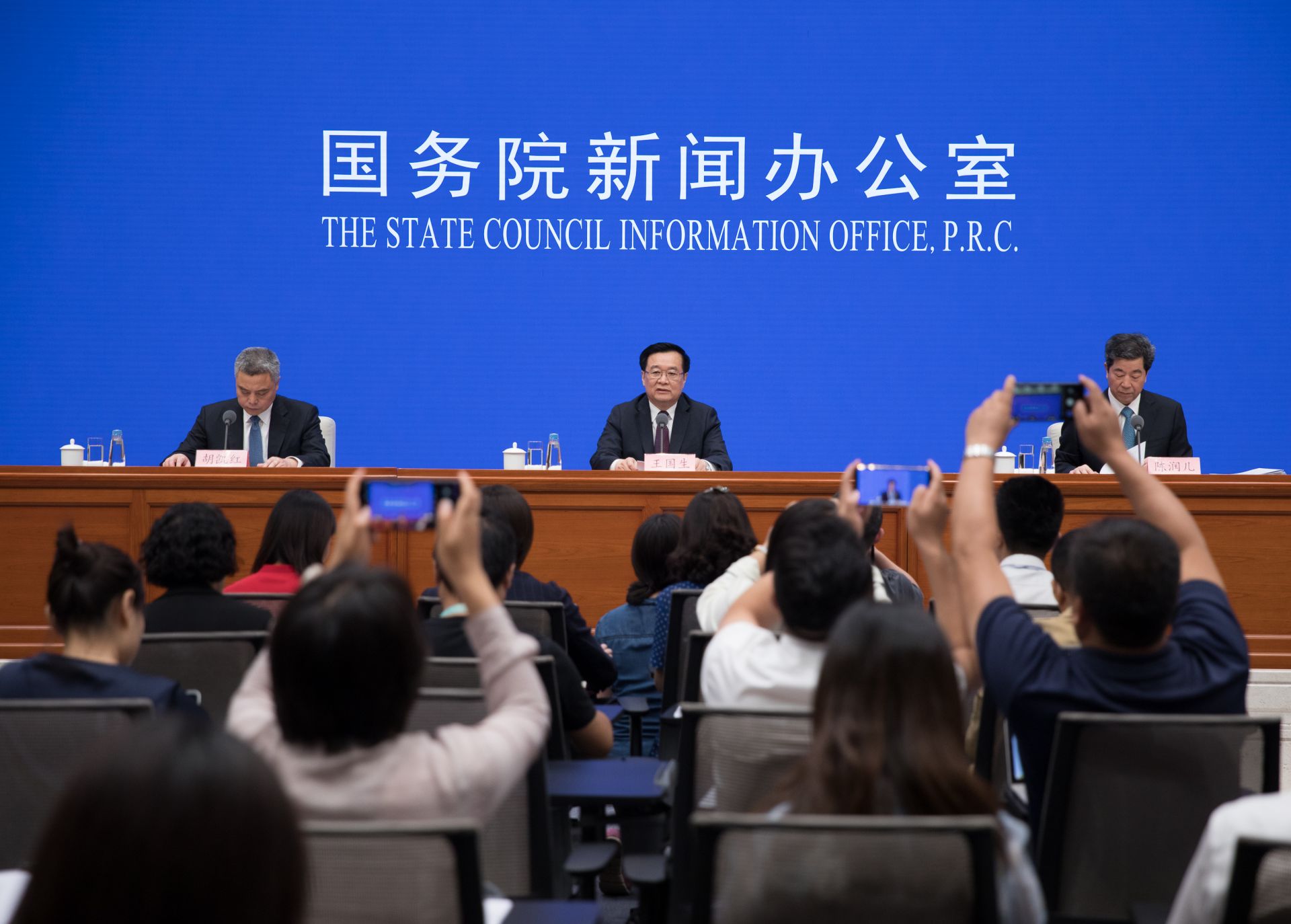 8月26日拍摄的发布会现场。 当日,国务院新闻办公室举行省(区、市)系列新闻发布会,请中共河南省委书记、河南省人大常委会主任王国生,中共河南省委副书记、河南省人民政府省长陈润儿围绕“开放的河南更出彩”作介绍,并答记者问。 新华社记者 金立旺 摄