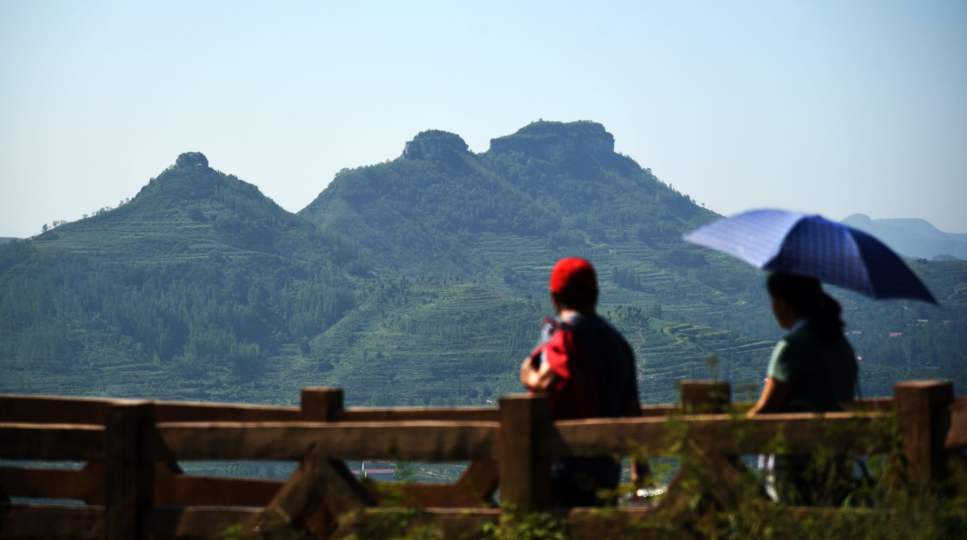 8月30日,游客在岱崮地貌景区游览。 山东岱崮地貌景区地处沂蒙山腹地。该地貌在山东省蒙阴县岱崮镇连绵聚集,是继“丹霞地貌”“喀斯特地貌”“嶂石岩地貌”“张家界地貌”之后的中国第五大造型地貌。2019年,以岱崮地貌景区为核心的沂蒙山地质公园被联合国教科文组织正式授予“世界地质公园”称号。 新华社记者 王凯 摄