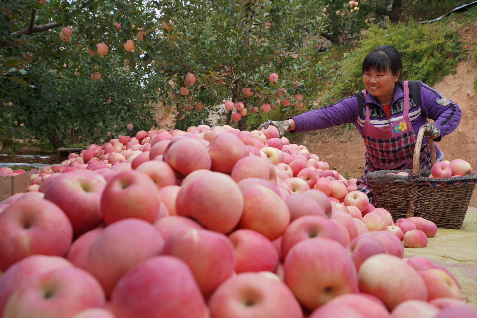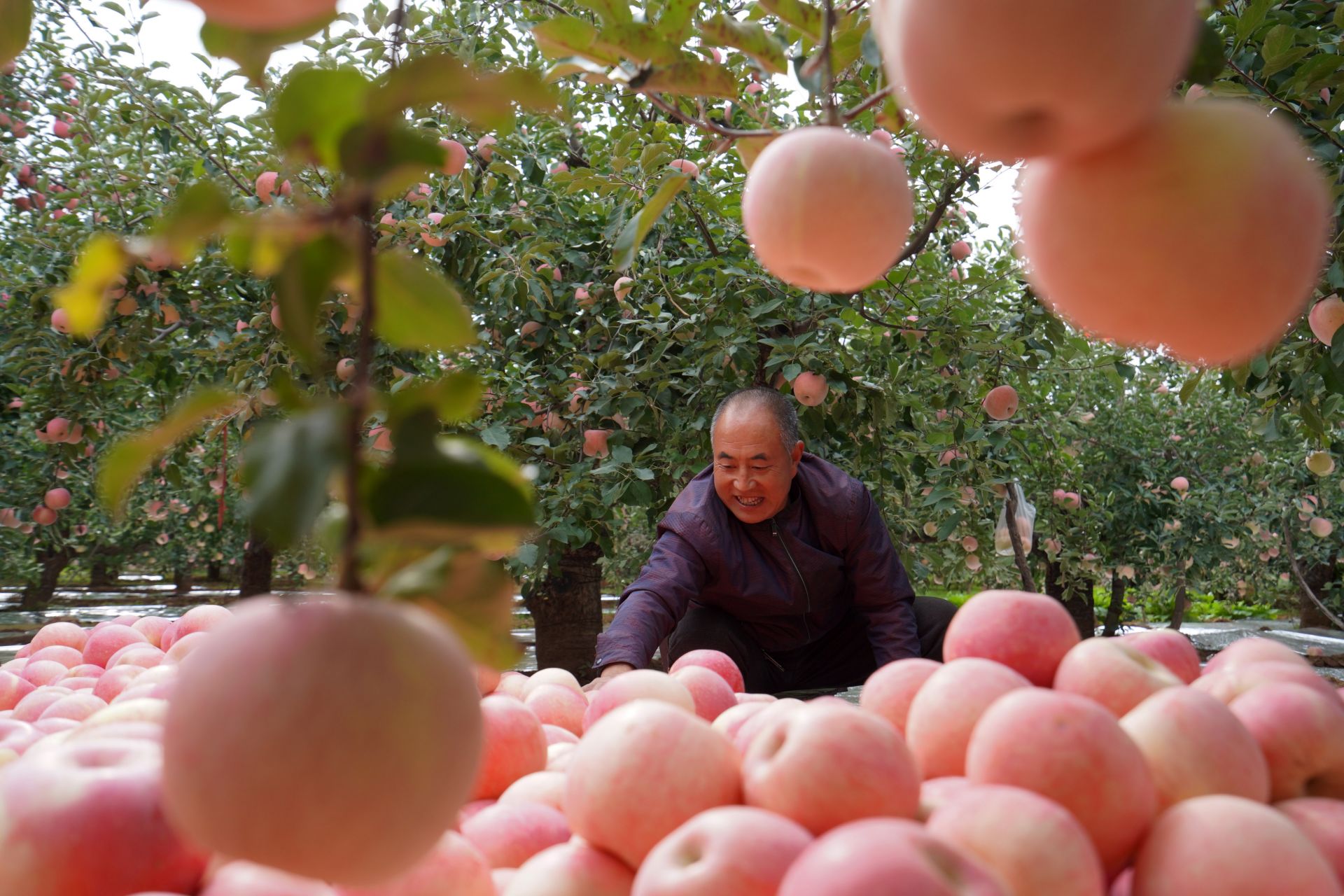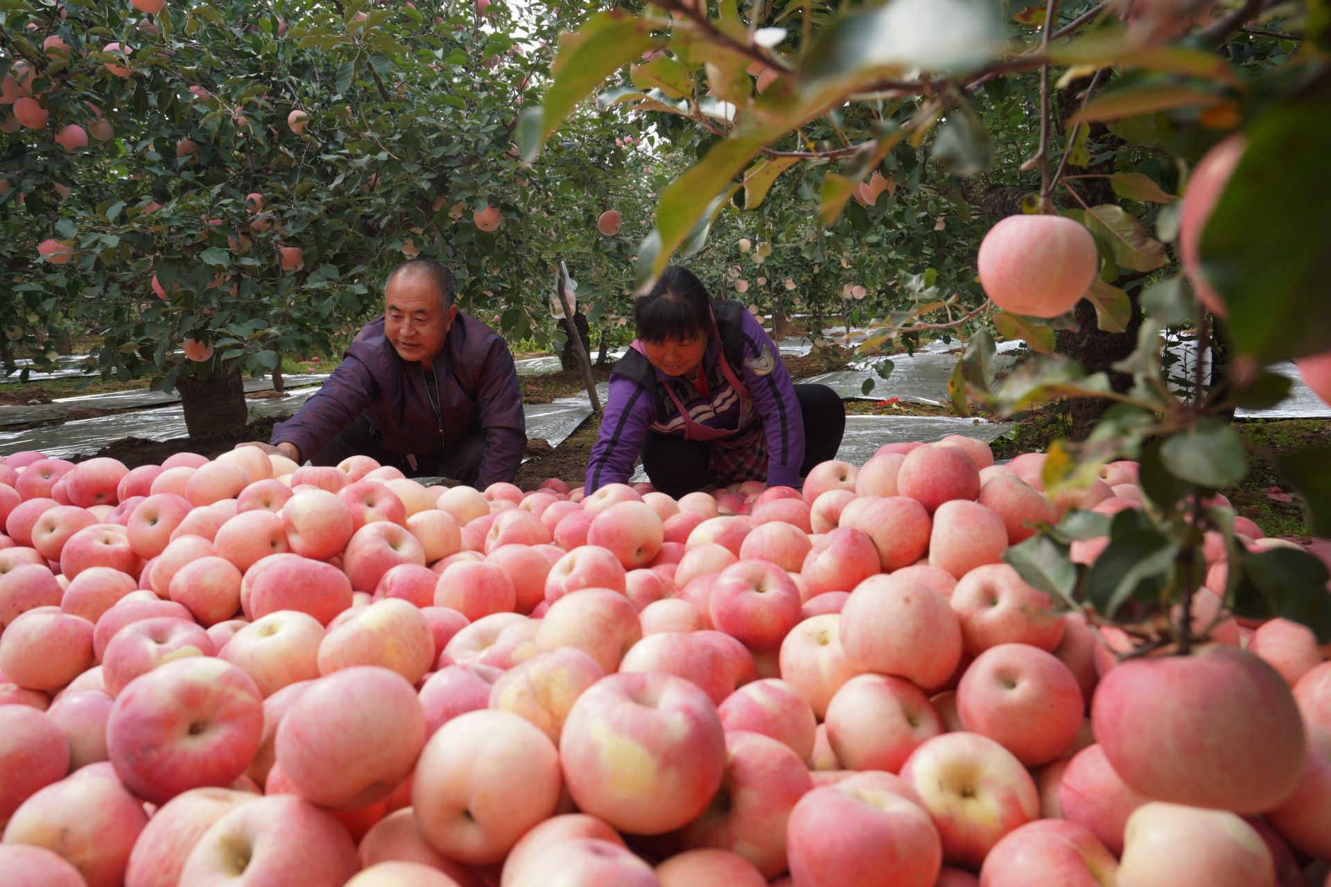 10月24日,内丘县岗底村果农在果园整理采摘的苹果。新华社记者 朱旭东 摄