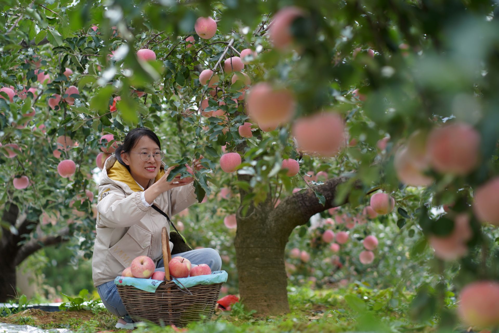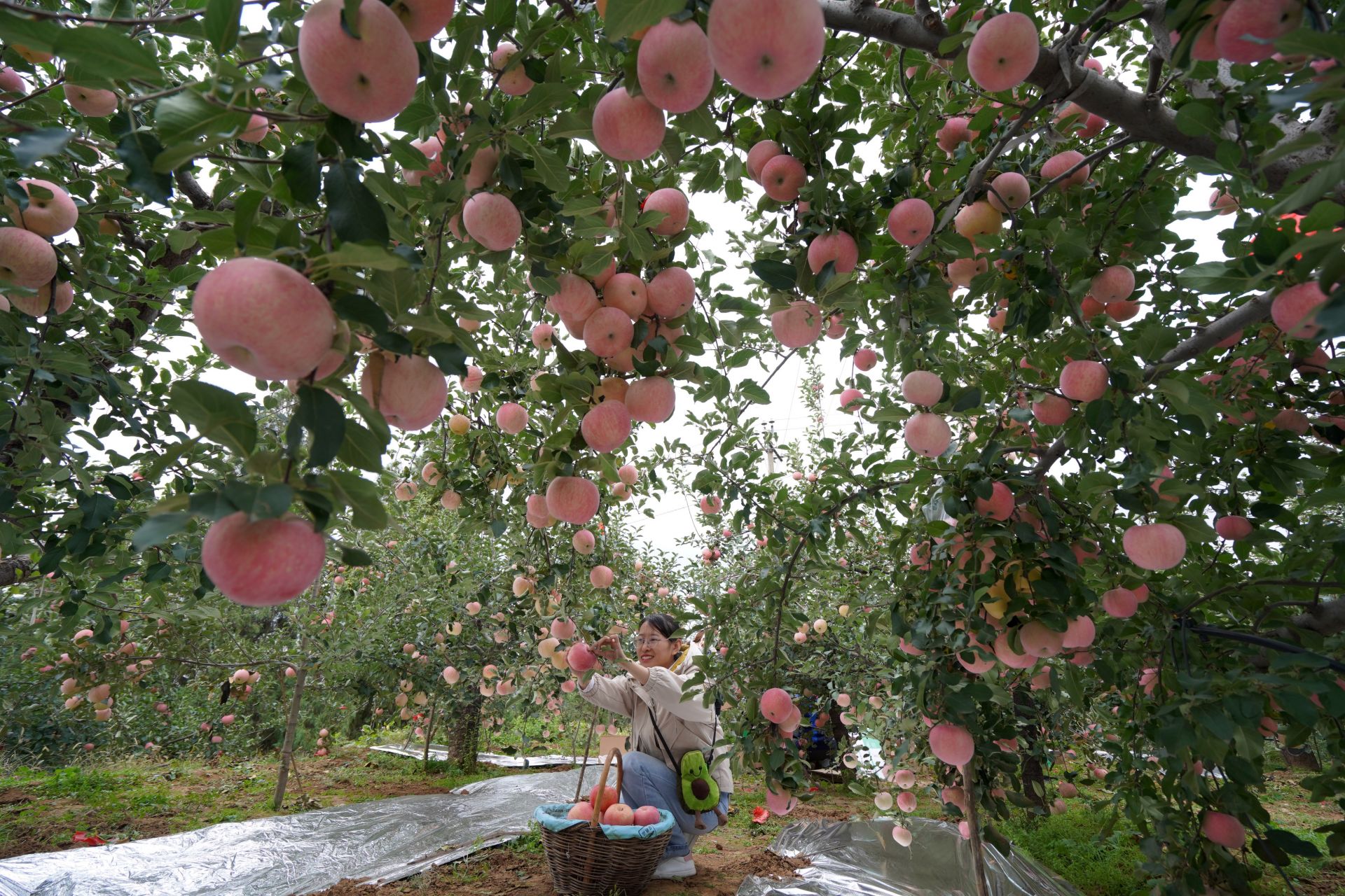 10月24日,游客在内丘县岗底村果园采摘苹果。新华社记者 朱旭东 摄