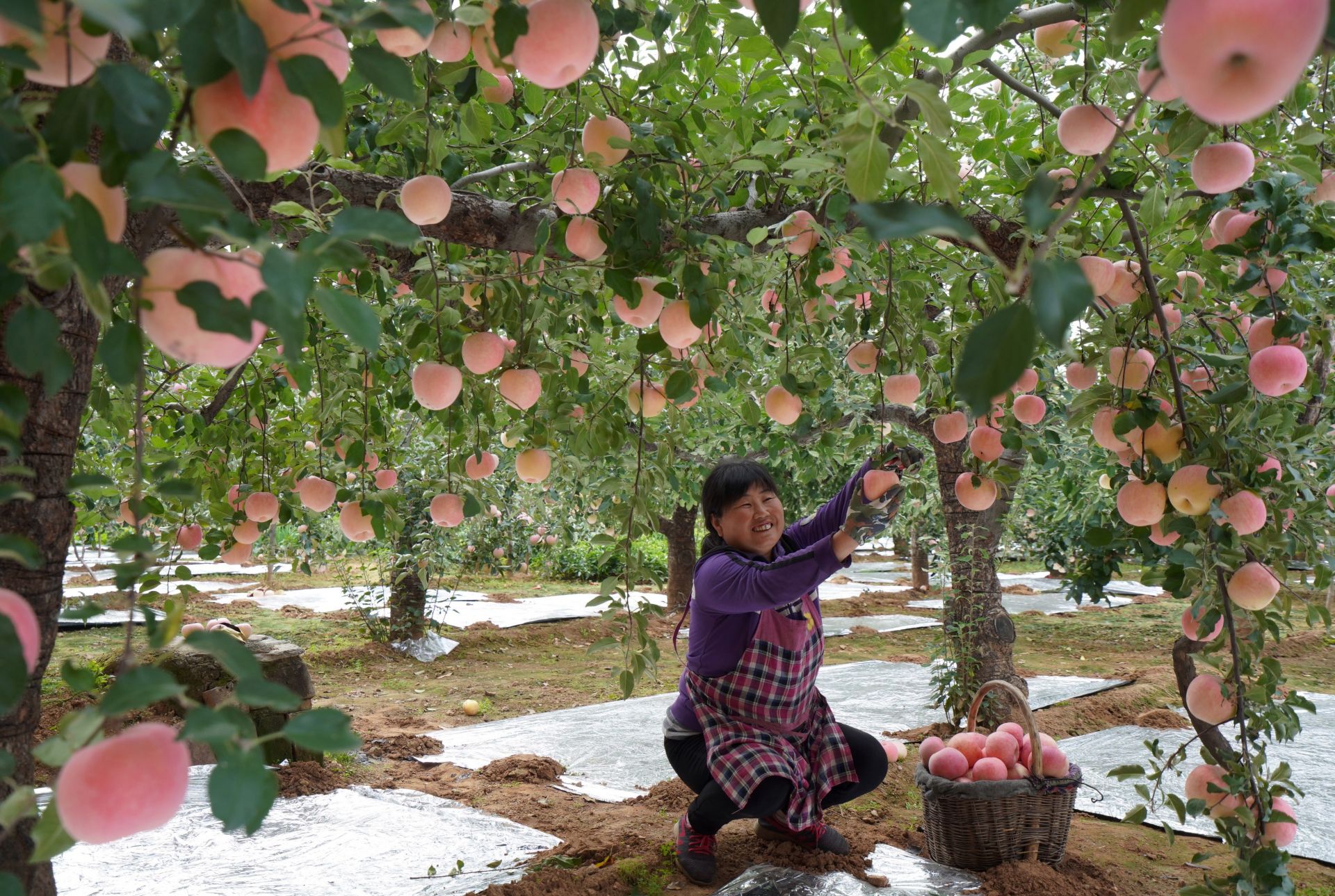 10月24日,内丘县岗底村果农在果园采摘苹果。 金秋时节,河北省内丘县岗底村3500余亩苹果迎来采收季,当地果农抢抓农时采摘果品供应市场。近年来,内丘县岗底村积极打造“岗底苹果”特色品牌,苹果产业已成为当地农民增收致富的支柱产业。 新华社记者 朱旭东 摄