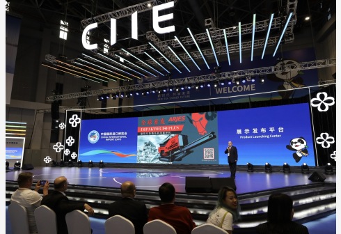 11月6日,德国阿吉斯公司的建筑垃圾循环利用破碎机在第二届进博会展示发布平台全球首发。正在上海举行的第二届中国国际进口博览会上,多款最新科技和产品在此实现“全球首秀”。 新华社记者 金立旺 摄