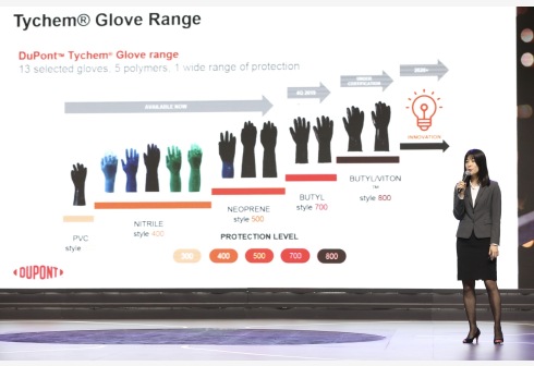 11月6日,美国杜邦公司的系列防化手套在第二届进博会展示发布平台全球首发。正在上海举行的第二届中国国际进口博览会上,多款最新科技和产品在此实现“全球首秀”。新华社记者 金立 旺摄