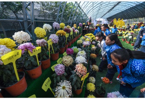 11月14日,开展第二课堂的小学生在长兴县林城镇北汤村的生态园中观看菊花展。近日,浙江省长兴县林城镇北汤村生态园举行的菊花展吸引众多游人参观。2万多盆100多种菊花和配花竞相绽放,还设有花艺、多肉植物、精品盆景等展区,日接待游客约2000至3000人次,成为当地乡村旅游一道美丽的风景。近年来,北汤村打造“花艺特色”旅游品牌,通过四季花展助力乡村旅游,包括秋冬的菊花展、春天的樱花展、夏天荷花展以及四季绽放的月季,让村民们一年四季生活在花海中,村集体经济收入也不断增加。村集体收入从2007年的3万元增长到2018年的450万元,农民人均年收入也达到3万多元,实现集体经济发展与村民增收“双赢”。 新华社记者 徐昱 摄