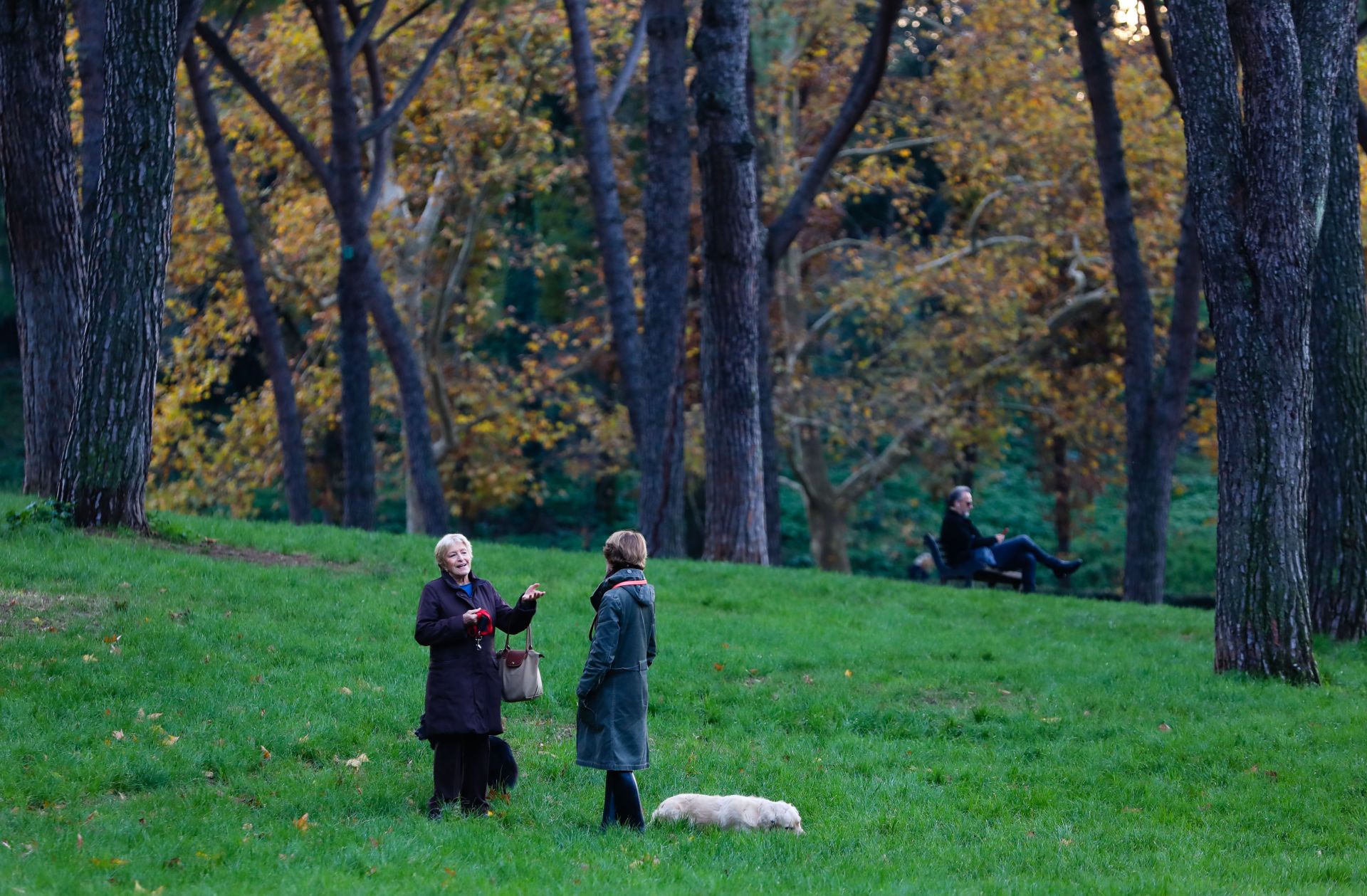 11月26日,在意大利罗马,人们在博尔盖塞公园聊天。 入秋至今,罗马持续多雨。在为数不多的好天气里,人们纷纷走进公园享受秋日。 新华社记者 程婷婷 摄