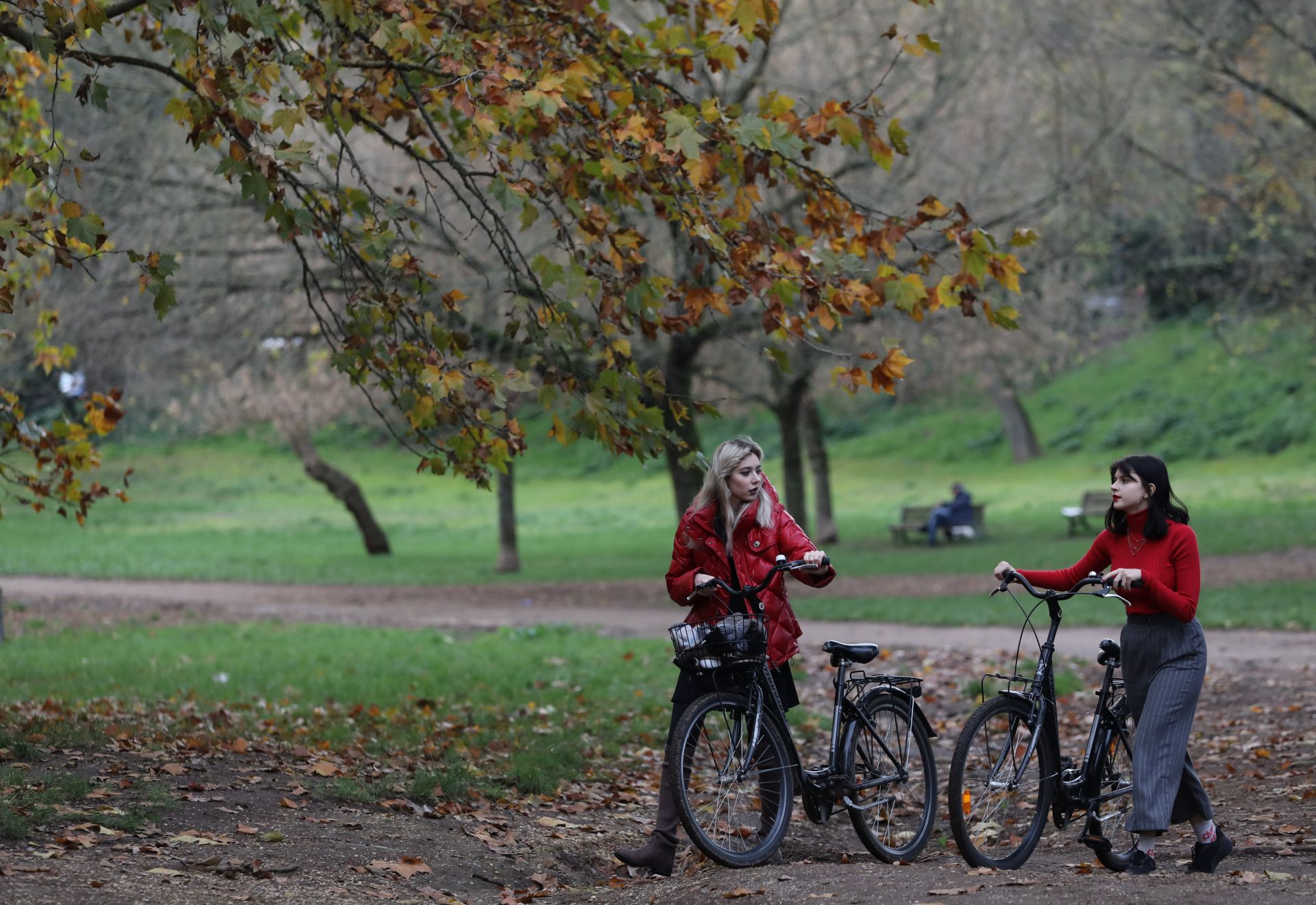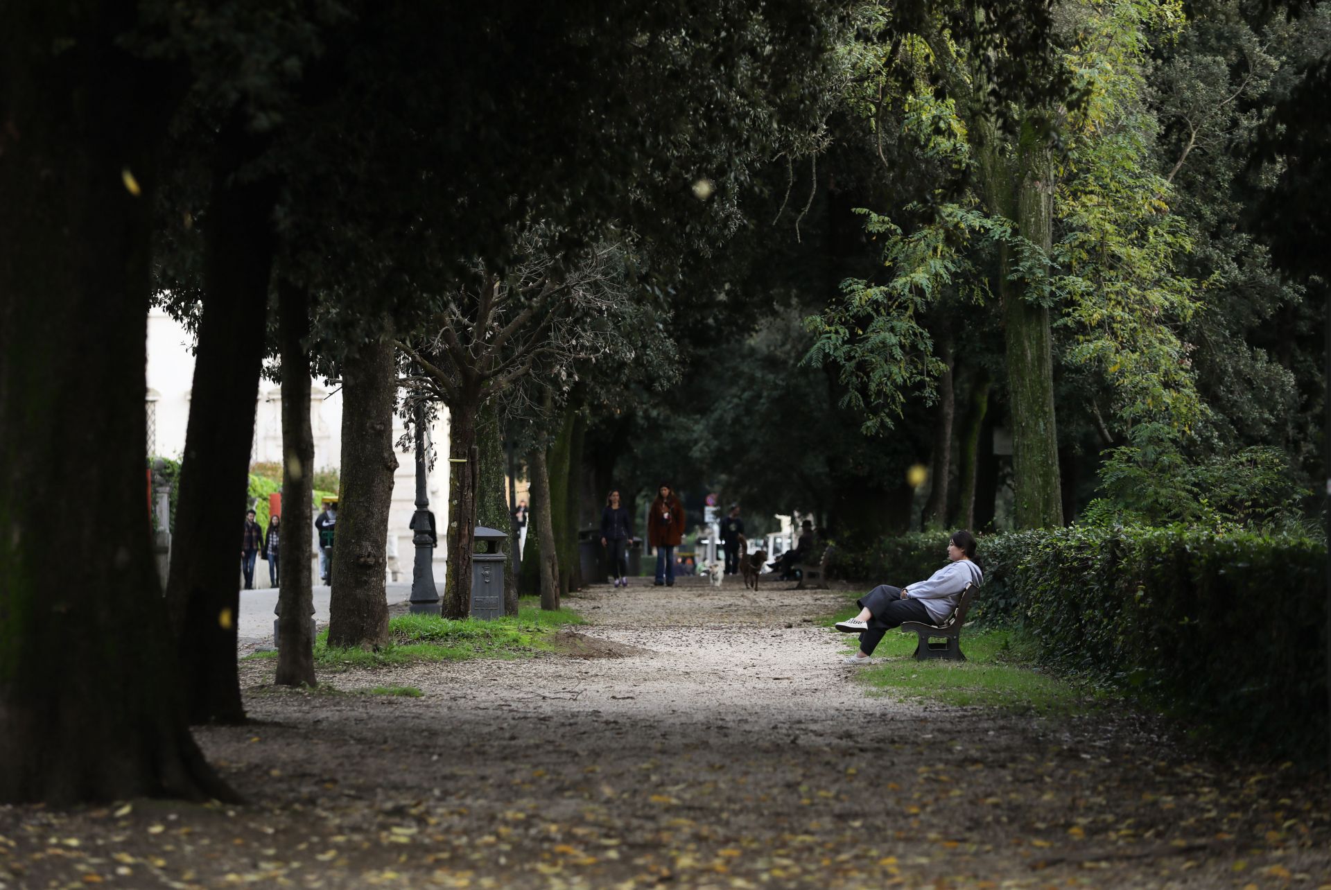 11月26日,在意大利罗马博尔盖塞公园,一名女子坐在长椅上。新华社记者 程婷婷 摄