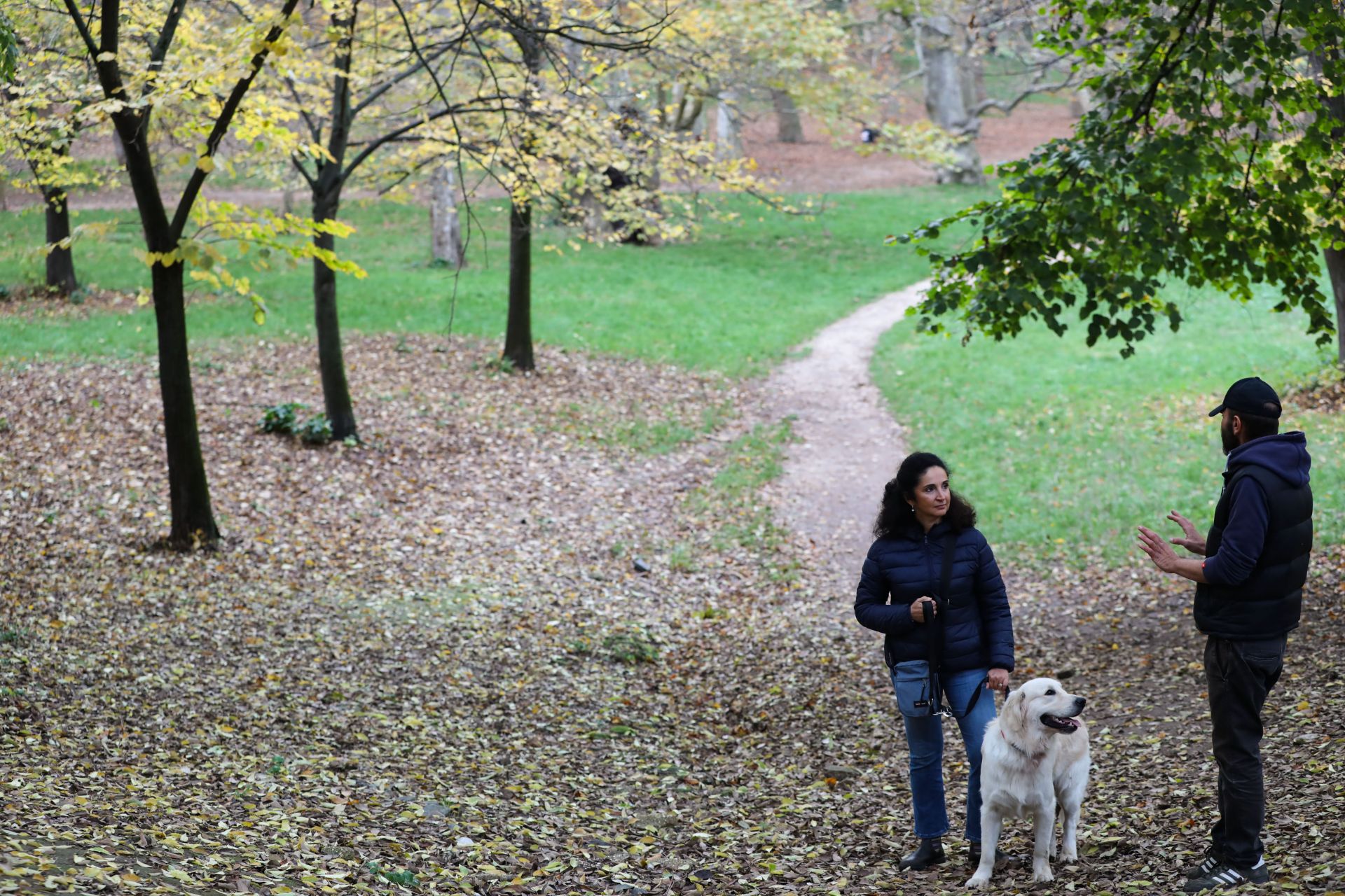 11月26日,在意大利罗马,人们游览博尔盖塞公园时交谈。新华社记者 程婷婷 摄