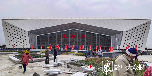 12月15日,盐城综合客运枢纽,工人们进行部分工程的最后扫尾工作。盐城综合客运枢纽将于12月16日正式投入使用。盐城综合客运枢纽是徐宿淮盐铁路的重要节点工程,是集高速铁路、普通铁路、长途大巴、出租车、城市公交、城市候机楼、旅游集散中心等多种交通方式实现“零换乘”的综合交通客运枢纽。盐阜大众报报业集团全媒体记者 黄海峰 通讯员 郭玉祥 摄