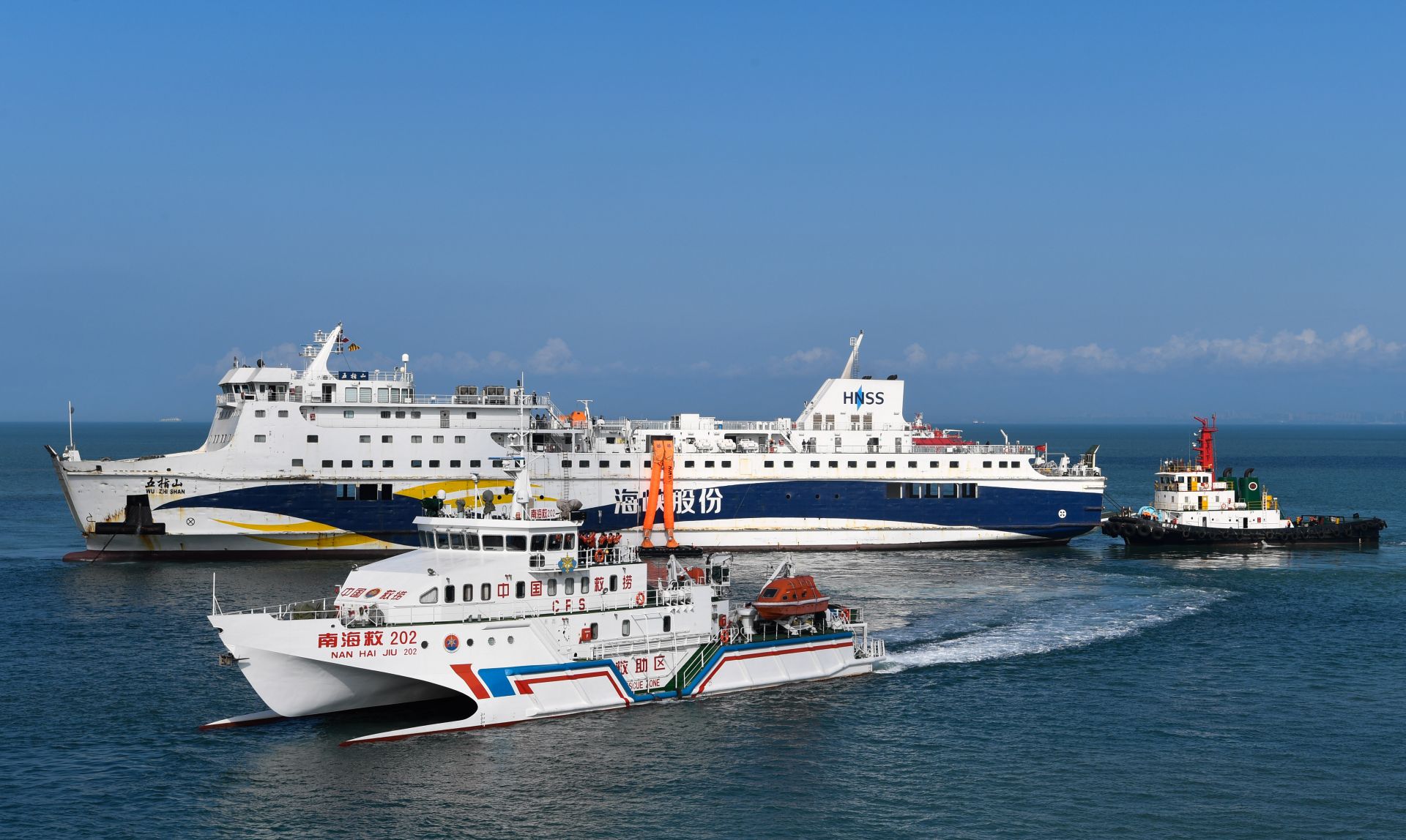 2019年琼州海峡客滚船海上大型应急救助综合演练在海口举行