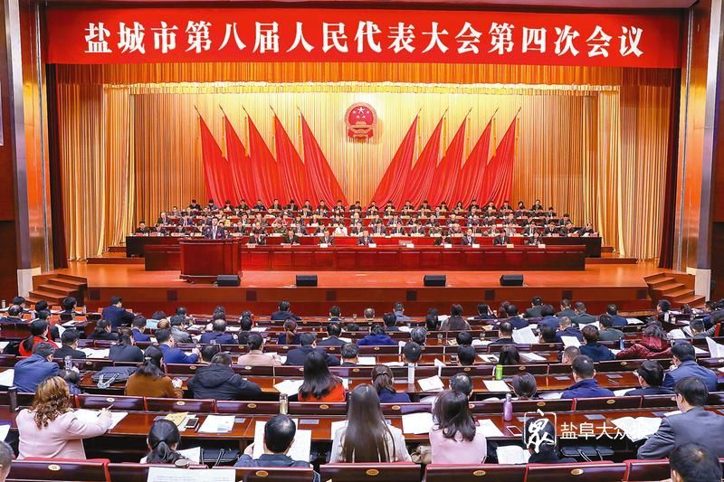 上午8时许,戴源宣布:盐城市第八届人民代表大会第四次会议开幕。全体起立,奏唱国歌。