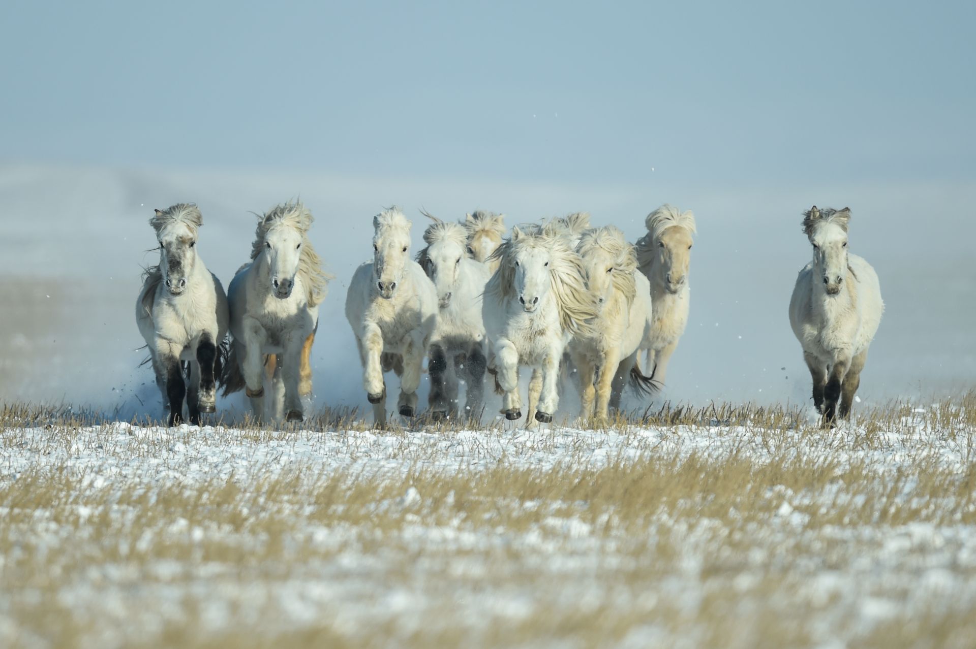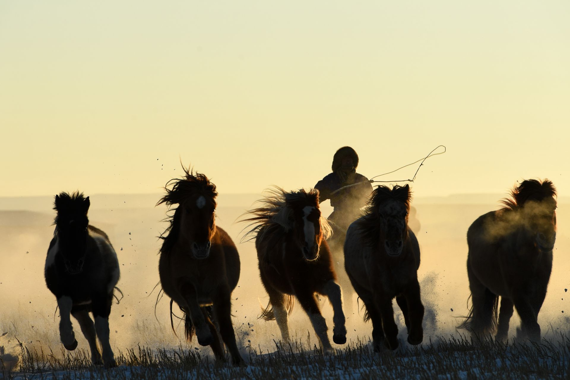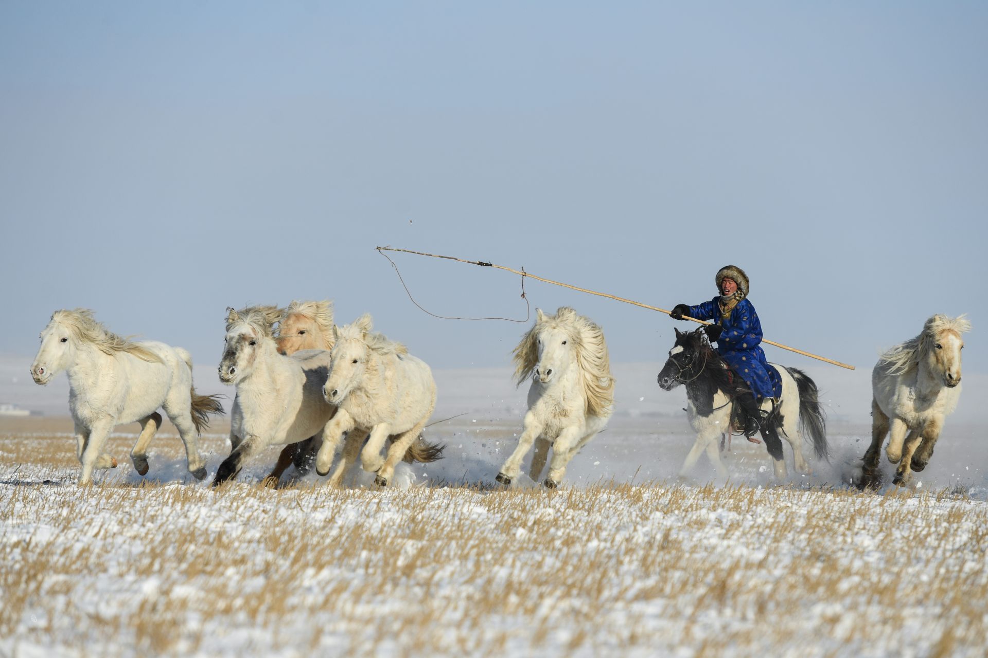 1月12日,一名骑手在雪原上驯马。 当日,内蒙古自治区锡林浩特市凤凰马场进行了一场驯马活动。骑手们赶着马群,在白茫茫的草原上奔跑,景象壮观,吸引了不少游客和摄影爱好者前来观赏。 新华社记者 刘磊 摄