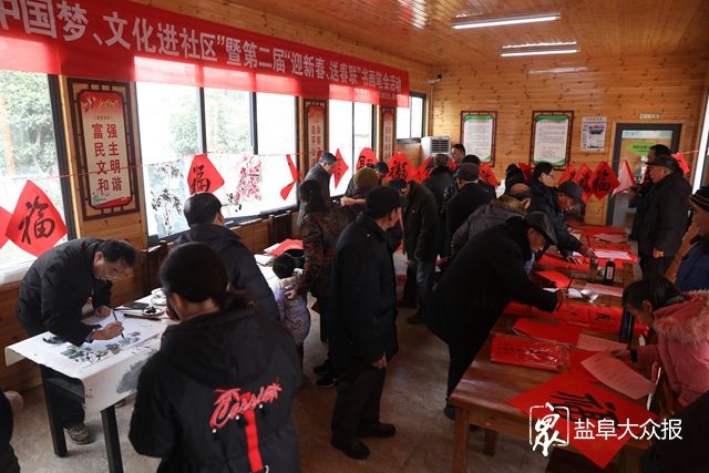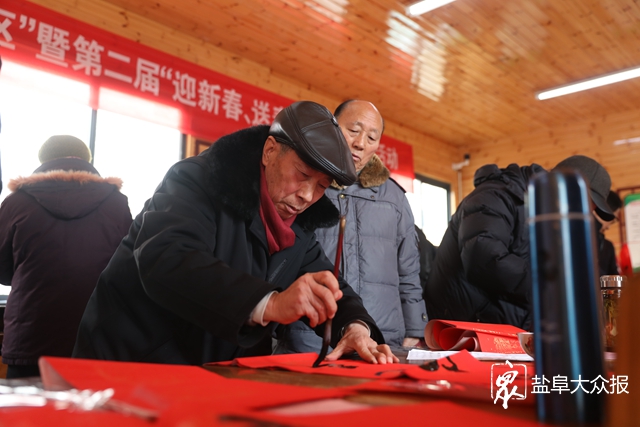 春节是中华民族最隆重的传统佳节,在临近春节时,广大居民都在家中张贴春联,象征一种祈求来年福运的美好心愿。为营造社区欢乐祥和的春节氛围,1月17日下午,亭湖区五星街道盐南社区开展“迎新春、送春联”书画笔会活动,把浓浓的年味和新春祝福送给社区居民。安东/摄