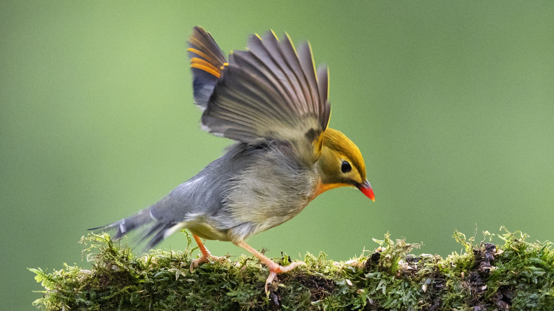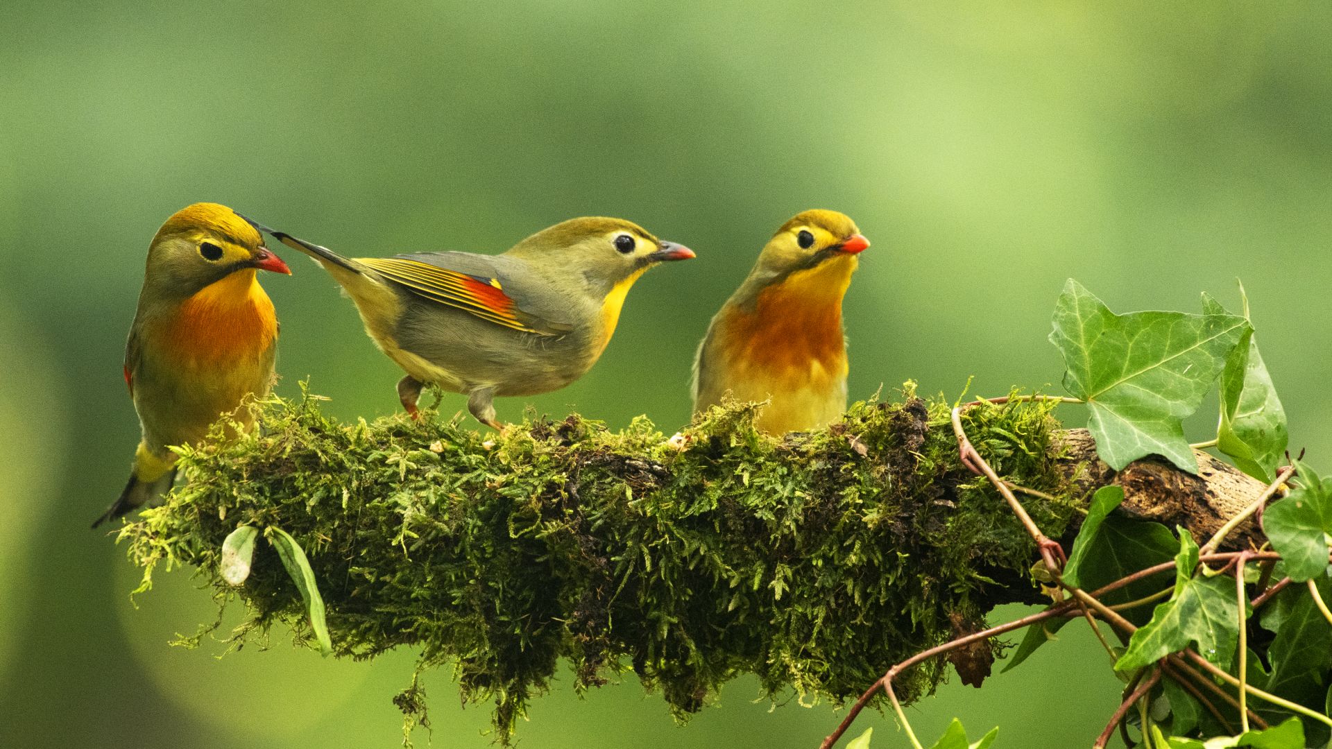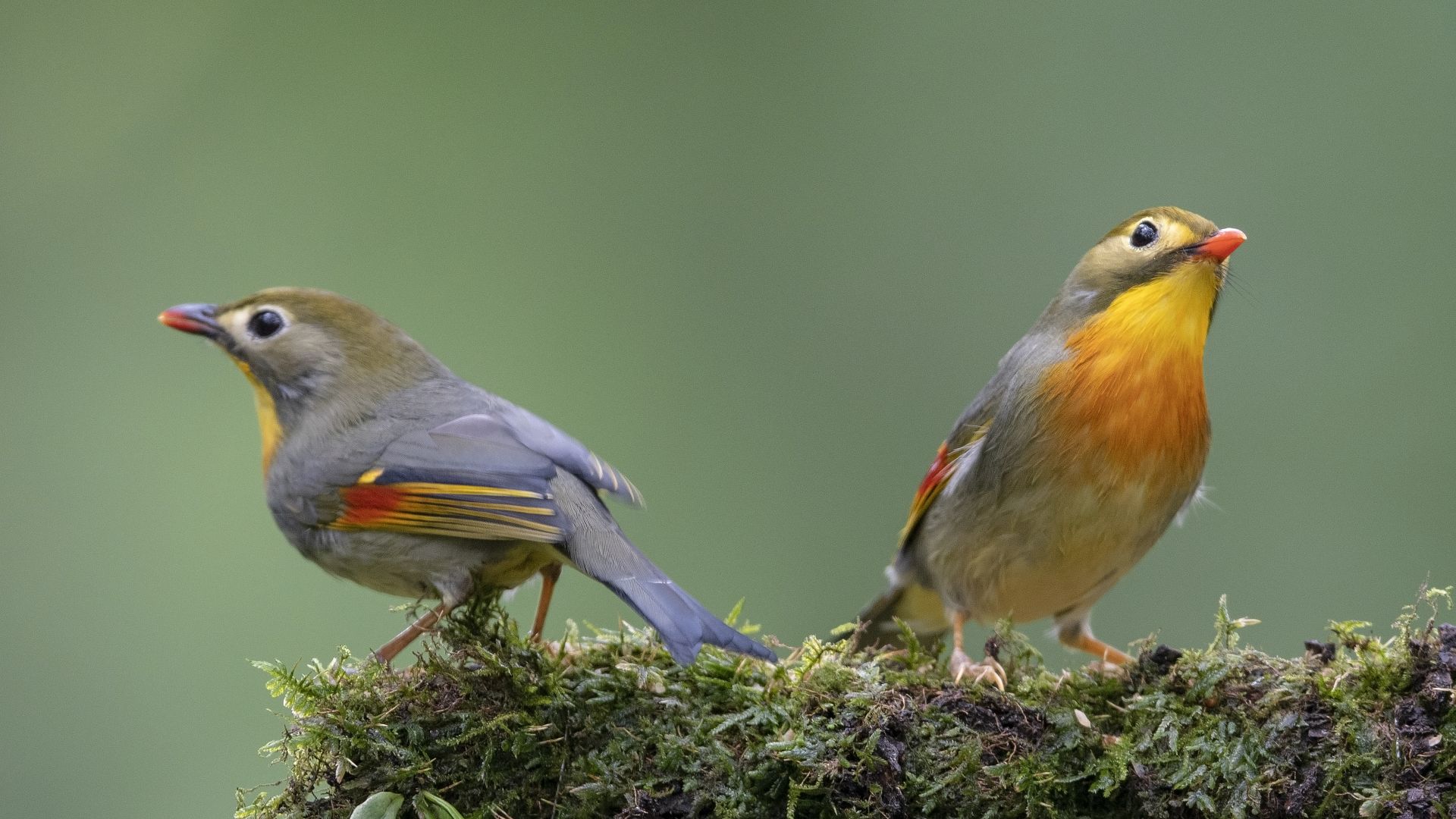 在福州西湖公园内,相思鸟在觅食、嬉戏(1月20日摄)。新华社记者 梅永存 摄