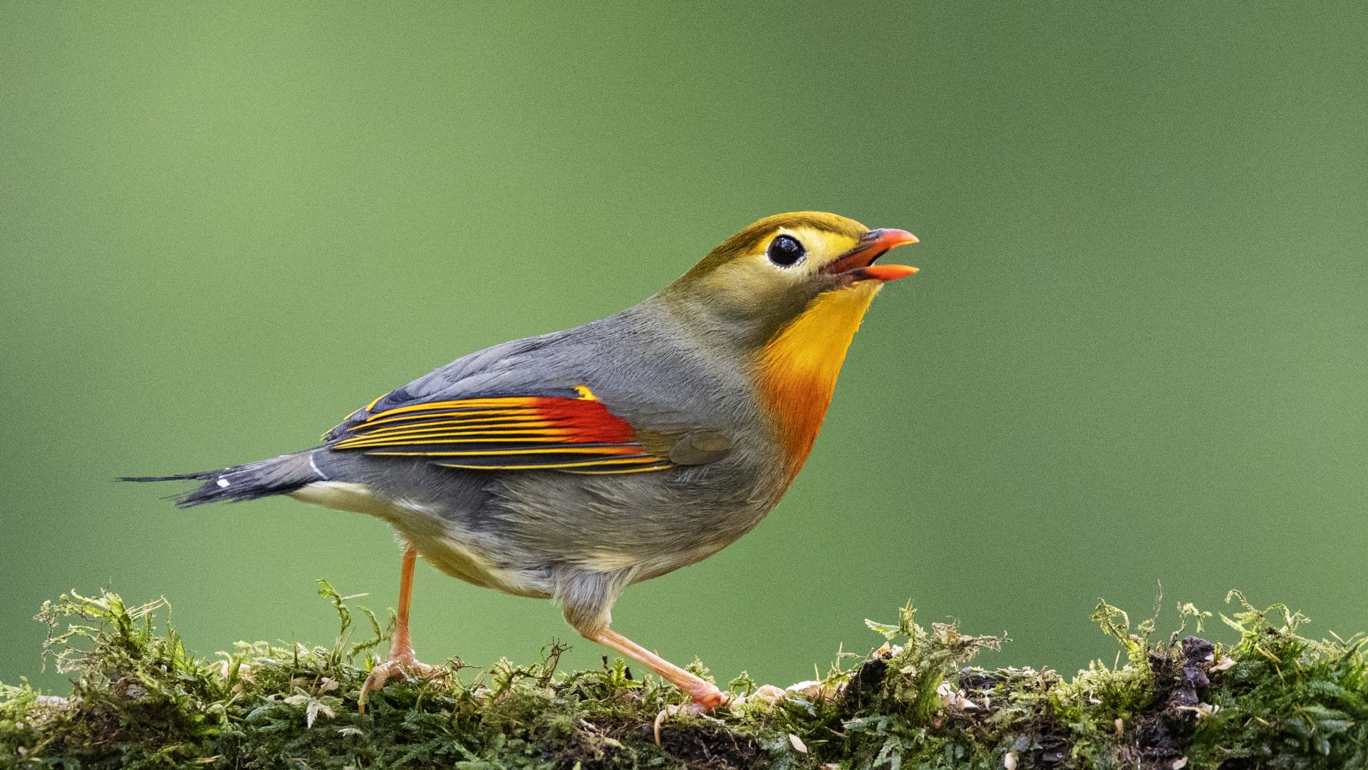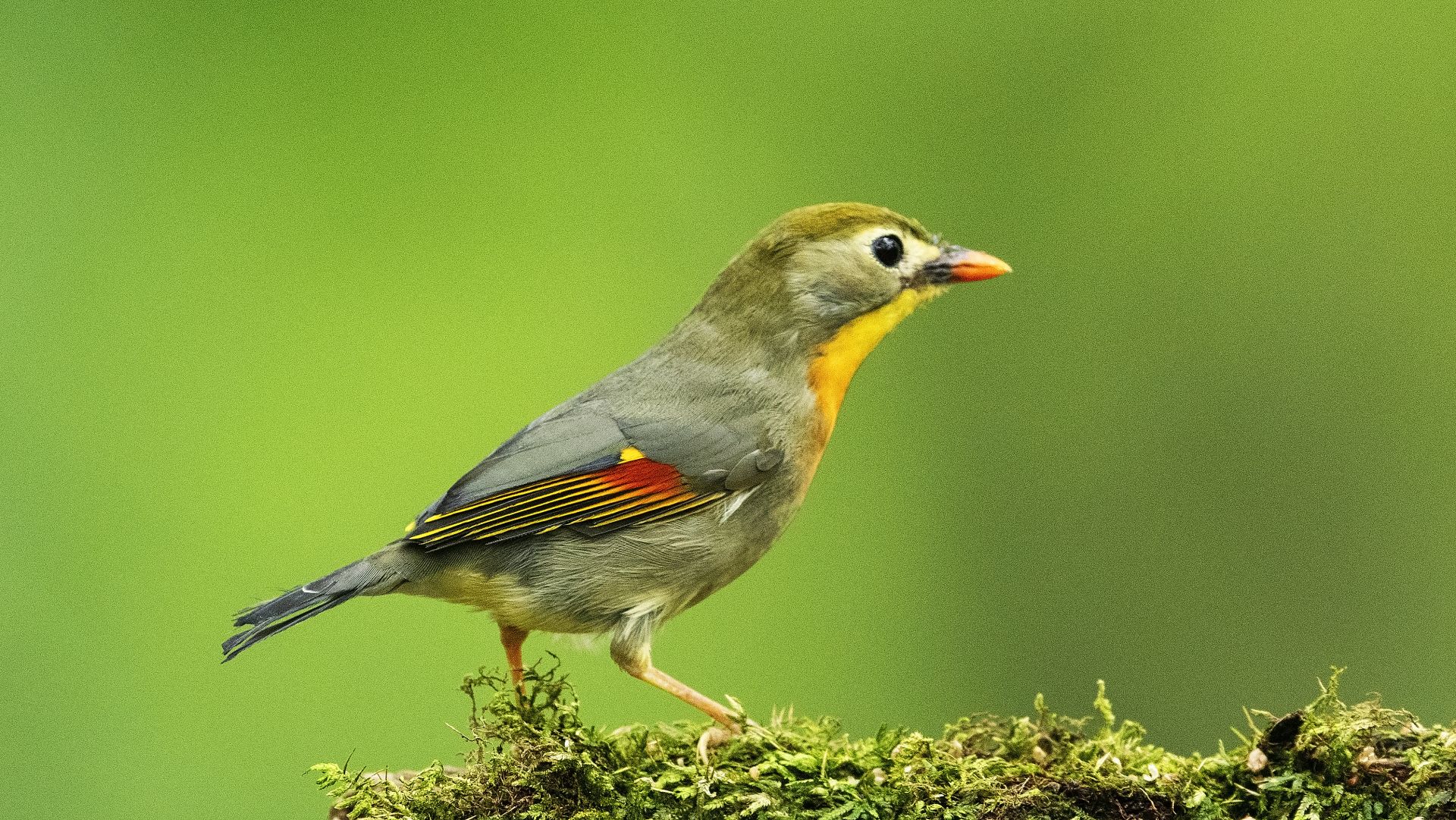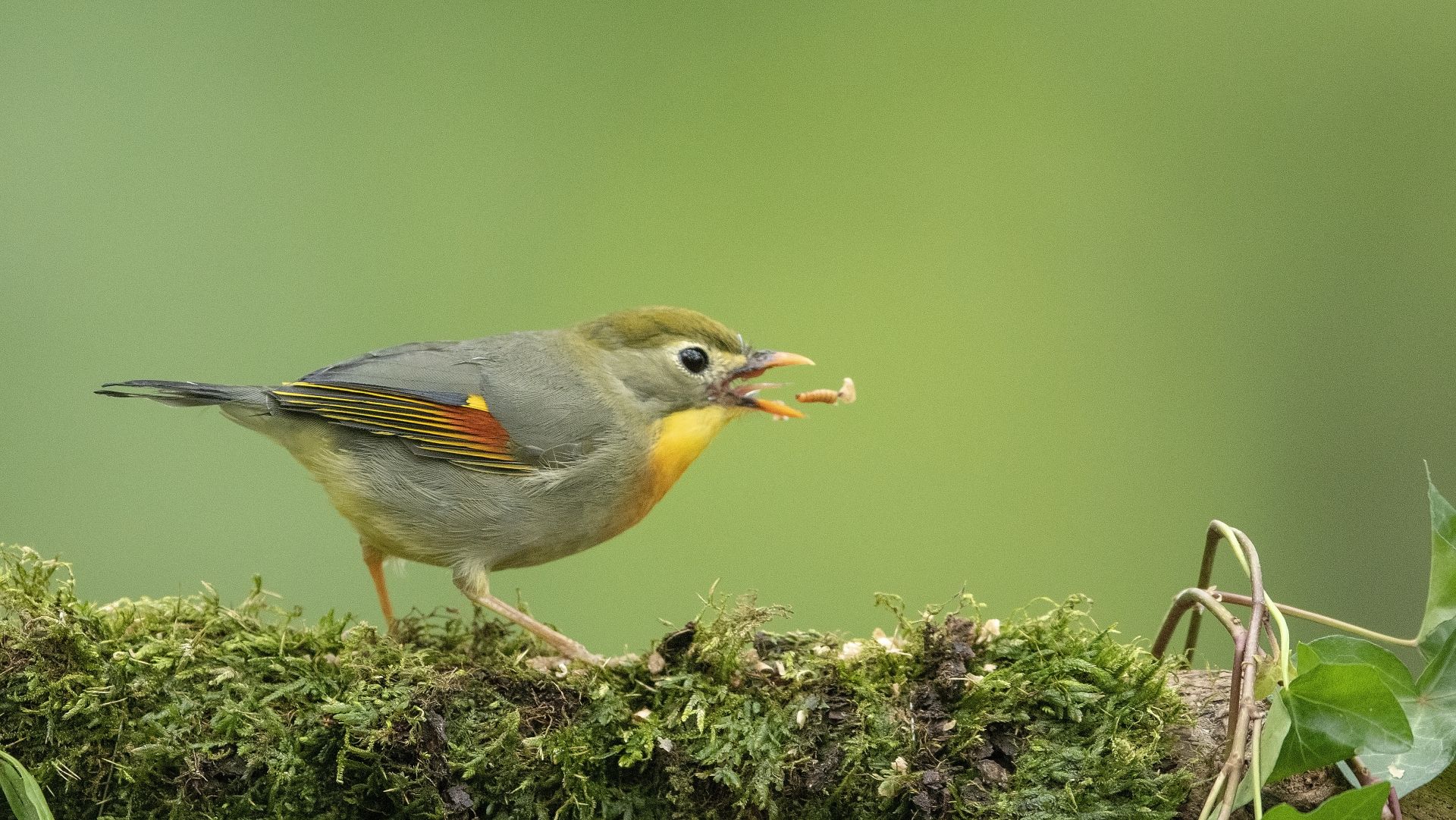 在福州西湖公园内,相思鸟在觅食、嬉戏(1月20日摄)。新华社记者 梅永存 摄