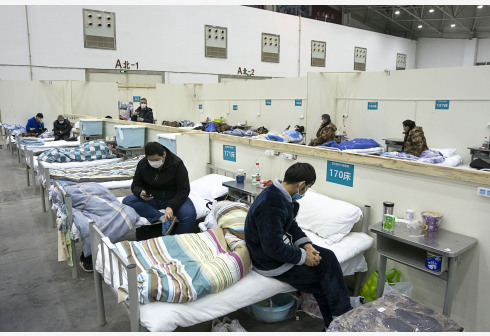 2月10日,患者在武汉客厅方舱医院内。武汉方舱医院从2月5日收治首批患者以来,运行平稳有序,患者在医护人员的精心照顾下调养身体,等待痊愈。新华社记者 熊琦 摄