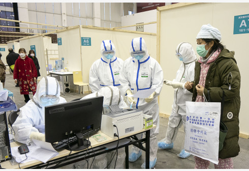 2月10日,在武汉客厅方舱医院,一名患者在办理入院手续。武汉方舱医院从2月5日收治首批患者以来,运行平稳有序,患者在医护人员的精心照顾下调养身体,等待痊愈。 新华社记者 熊琦 摄