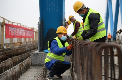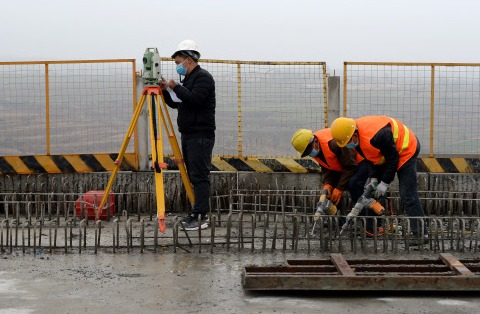 2月28日无人机拍摄的银西高铁漠谷河2号特大桥。 为确保银(川)西(安)高铁年底按期开通,2月28日,在做好疫情防控的同时,由西成铁路客运专线陕西有限责任公司建设、中国中铁四局集团有限公司承建的银西高铁漠谷河2号特大桥恢复施工。 银西高铁漠谷河2号特大桥位于陕西省咸阳市乾县境内,大桥全长1605.22米,是银西高铁全线跨度最大、墩高最高的桥梁,也是陕西段重点控制性工程。 新华社记者 刘潇 摄