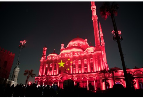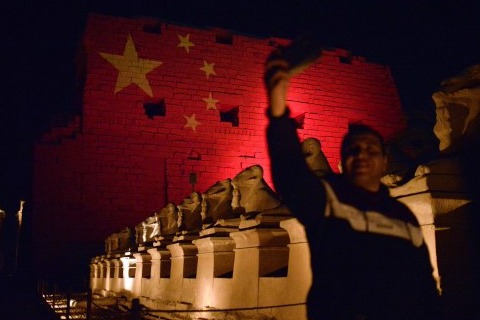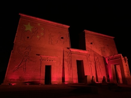 埃及古迹点亮五星红旗