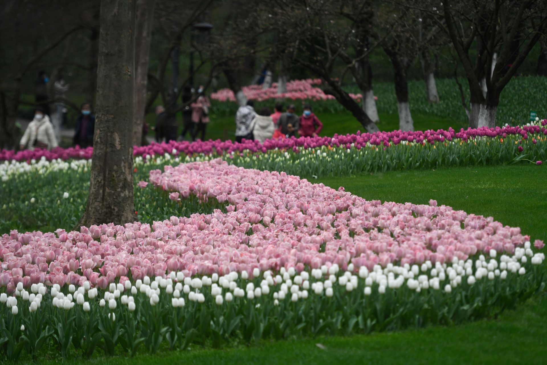 3月10日,市民和游客在太子湾公园赏春。 近日,浙江省杭州市太子湾公园里的鲜花陆续绽放。为避免游客聚集,太子湾公园采取实名预约制,预约时段分为上午、下午共两场,每场入园人数暂时控制为5000人。 新华社记者 黄宗治 摄