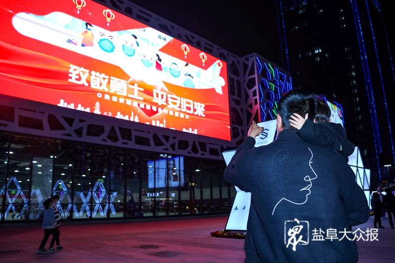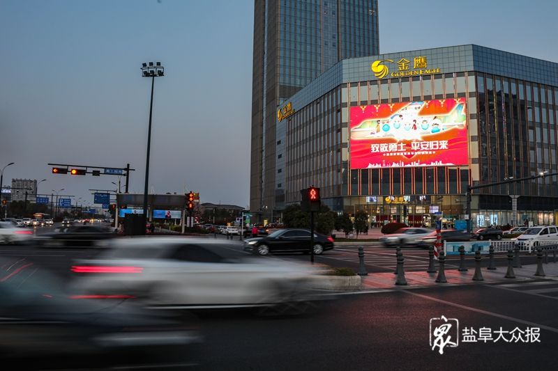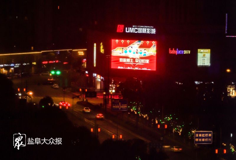 3月20日开始,全市持续一周以亮灯的方式向盐城驰援湖北的医护人员致敬。当夜幕降临,从电视塔到南金鹰,从欧风花街到新弄里,全城地标建筑和繁华商业中心,以及公交站台的电子屏幕集中亮起,屏幕中一张张可爱逆行者的笑脸温暖绽放。盐阜大众报报业集团全媒体记者 王亚洲 郜野乔 摄