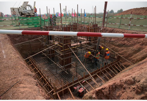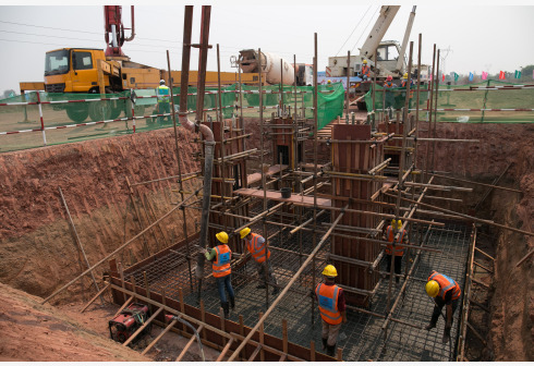 这是3月31日拍摄的中老铁路万象站40米四管通信铁塔浇筑现场 。中老铁路万象站40米四管通信铁塔31日上午顺利浇筑,标志着中老铁路全线通信信号工程正式拉开序幕。新华社 发(凯乔摄)